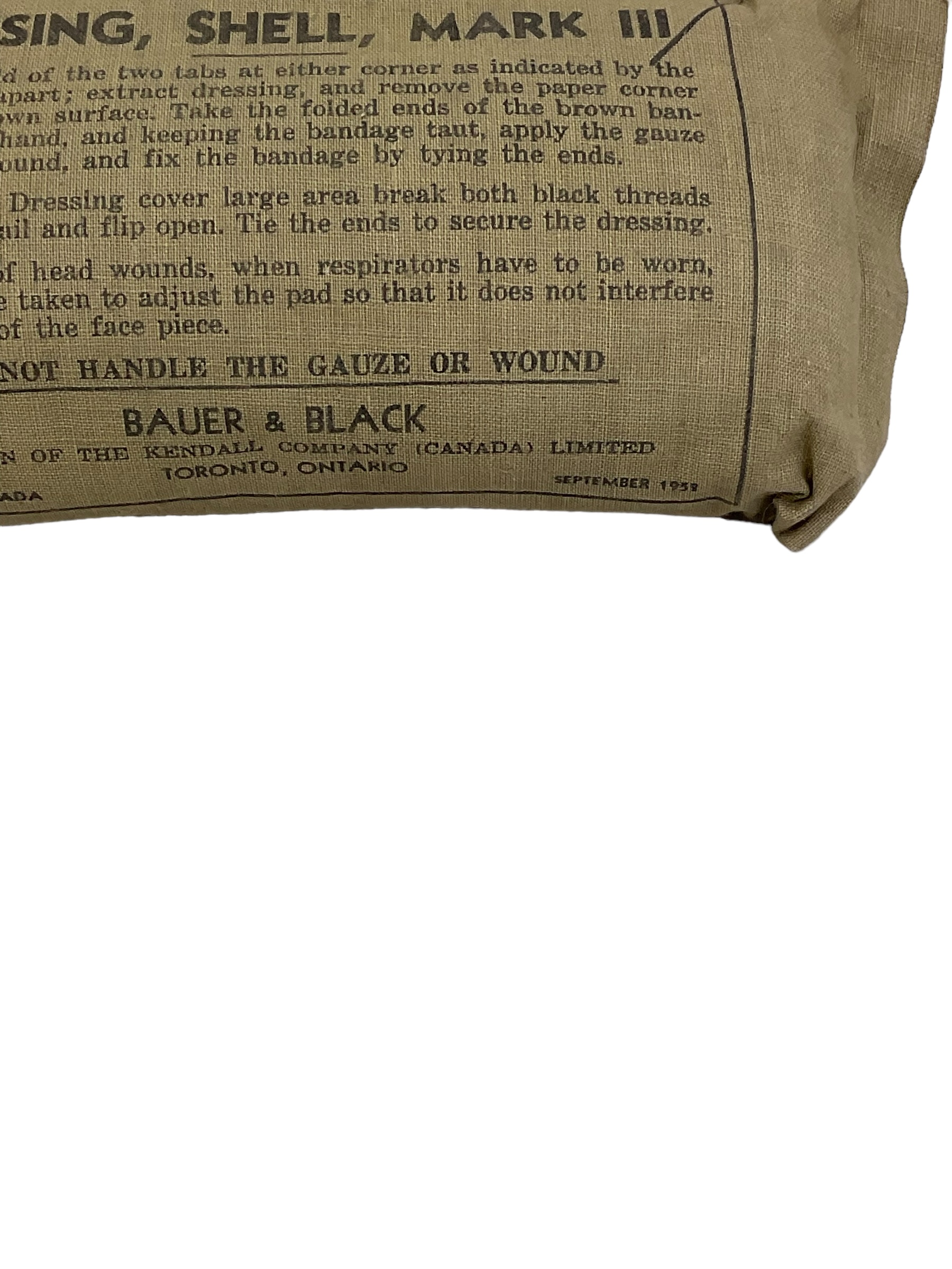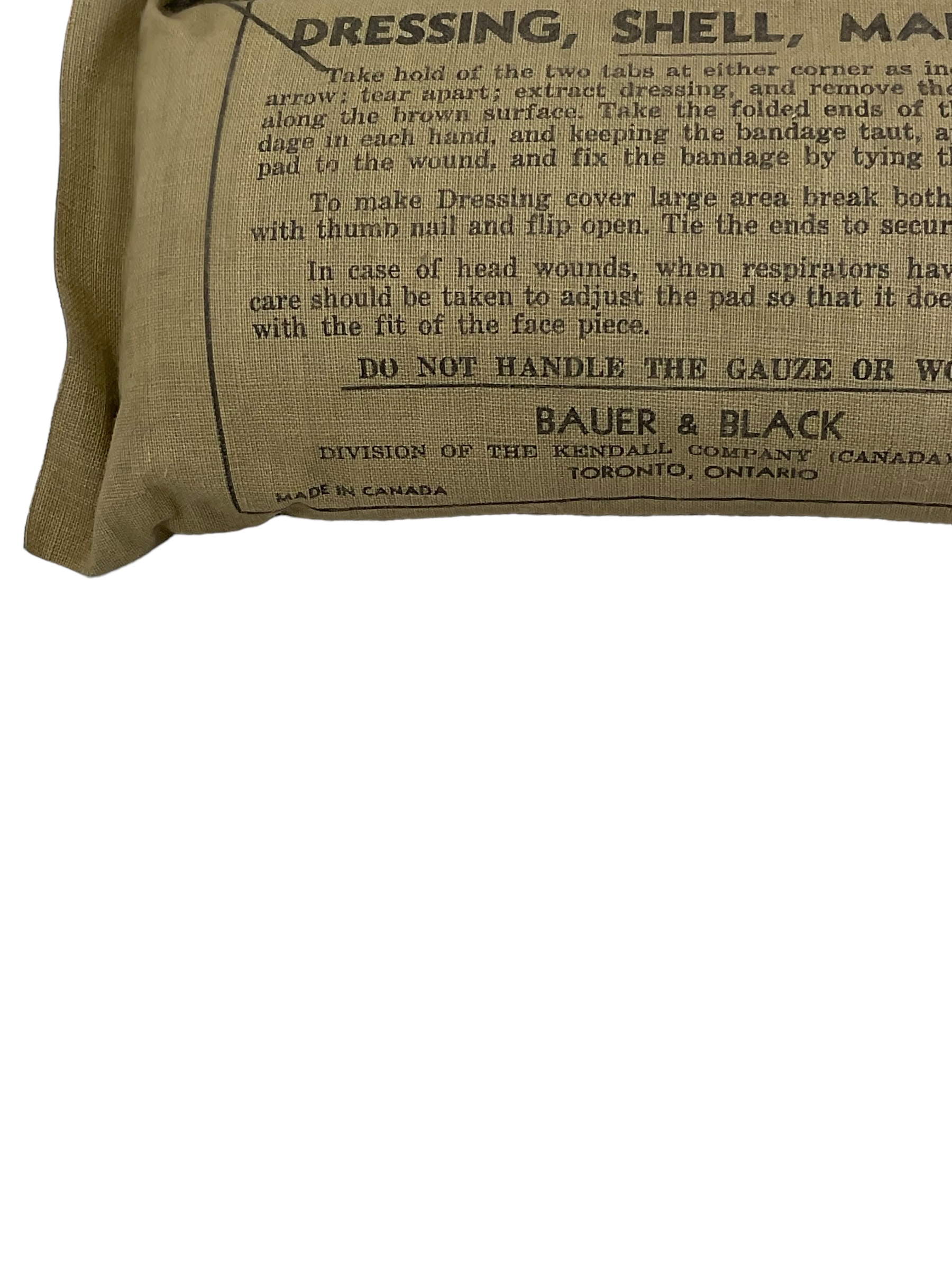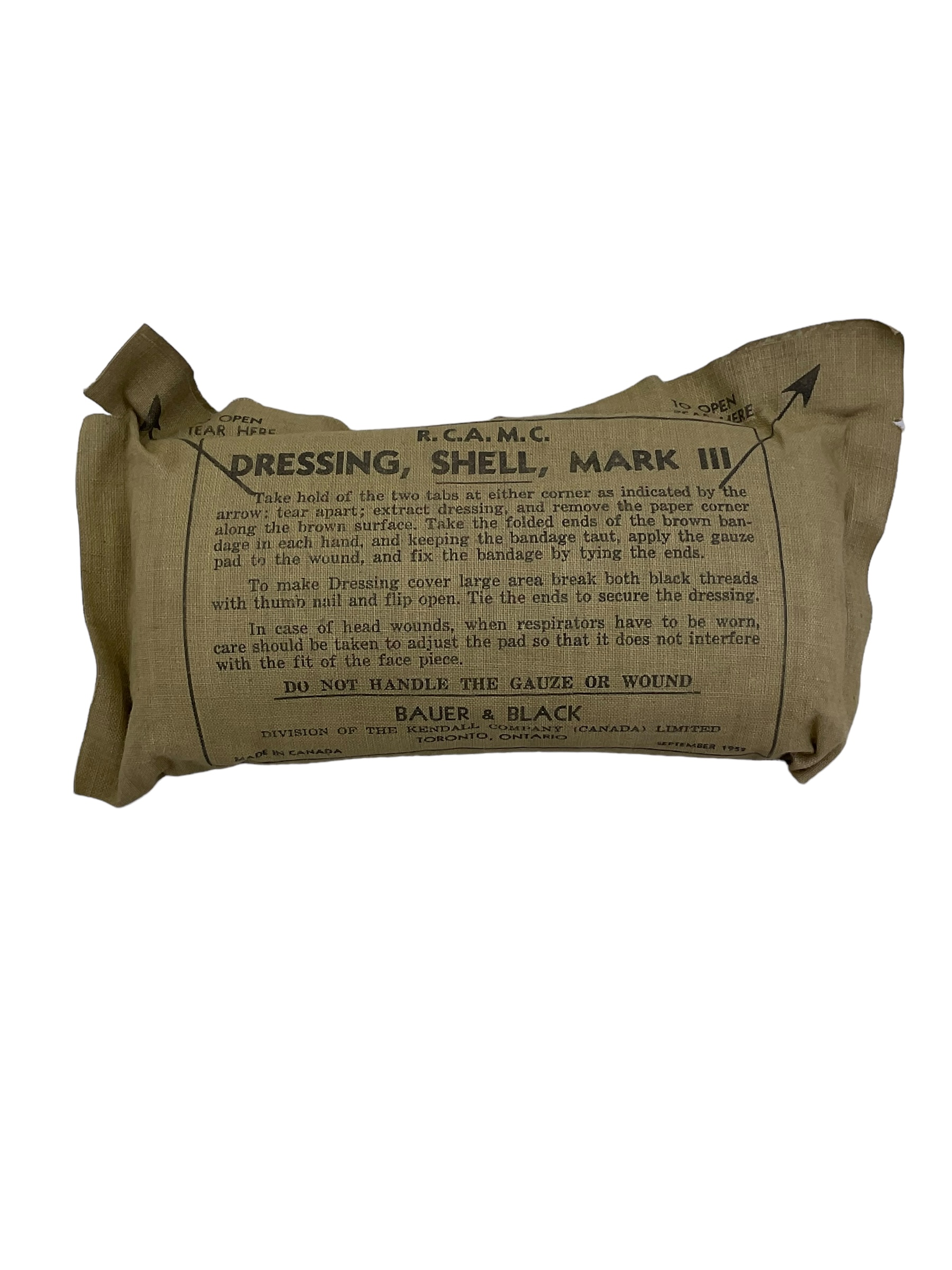The “Canadian Army RCAMC Korean War Shell Dressing 1952 Dated” is a historical military medical artifact from the Korean War era. Issued by the Royal Canadian Army Medical Corps (RCAMC), this shell dressing is a testament to the vital support provided by Canadian medical personnel during the conflict. Dating back to 1952, it represents the type of emergency medical supplies carried by soldiers to treat wounds on the battlefield. The dressing is an excellent example of mid-20th-century military medical equipment, reflecting the practices and materials used during the period. Collectors and historians may find particular interest in this item due to its specific date and well-preserved condition, offering insights into the Canadian military’s role in the Korean War and the evolution of battlefield medical care. This shell dressing is more than just a medical supply; it is a piece of history that speaks to the bravery and resilience of those who served.