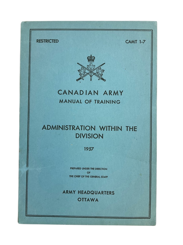 Canadian Army Training Administration Within Division 1957 Manual Reference Book
