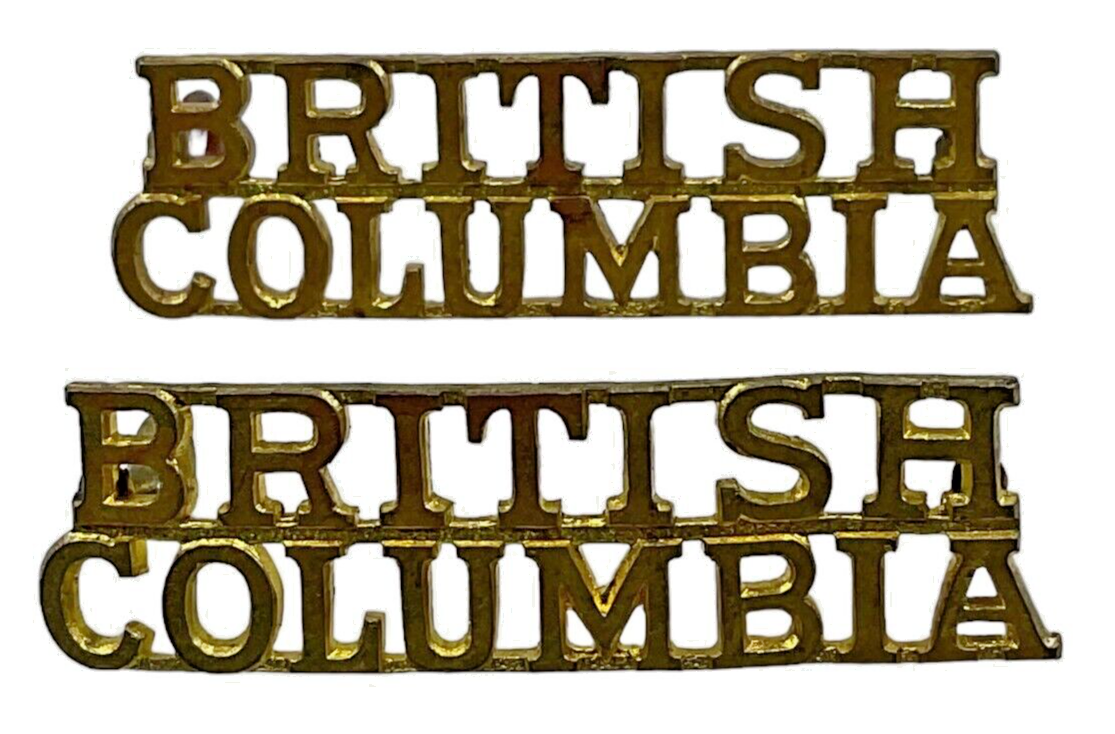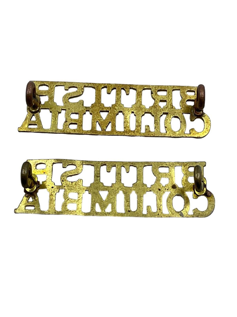Canadian British Columbia Regiment Brass Shoulder Titles Insignia Pair