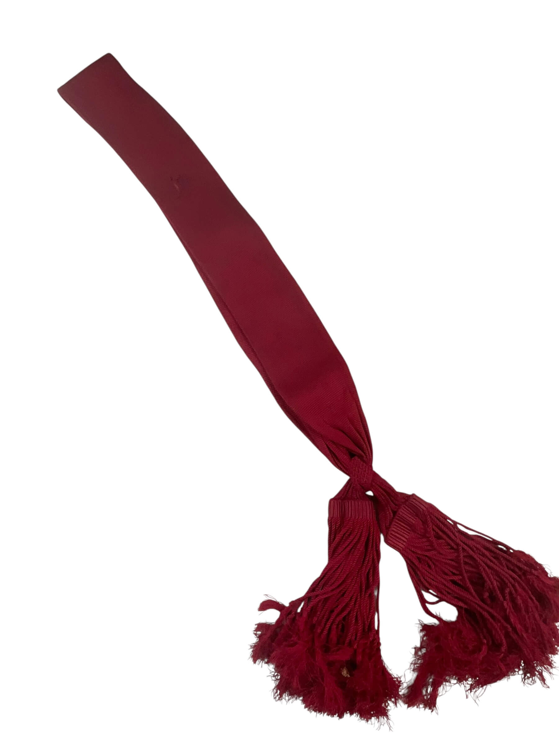 The Canadian British Highland Officers Red Sash is a traditional element of Highland military dress, commonly worn by officers of Scottish regiments within Canada’s armed forces. Characterized by its vibrant red color, this sash is typically constructed from silk or a silk blend, featuring a long, flat-woven piece with knotted fringes at both ends. It is designed to be worn around the waist or draped over one shoulder, with the ends hanging at the side or back, depending on regimental tradition. The red sash historically served as a symbol of rank and authority among officers and was sometimes used for practical purposes, such as aiding in the evacuation of wounded soldiers from the battlefield. This item reflects the enduring influence of British military customs within Canadian regiments, particularly those with Highland roots. It remains an important component of formal dress uniforms for parades, ceremonies, and commemorative events.