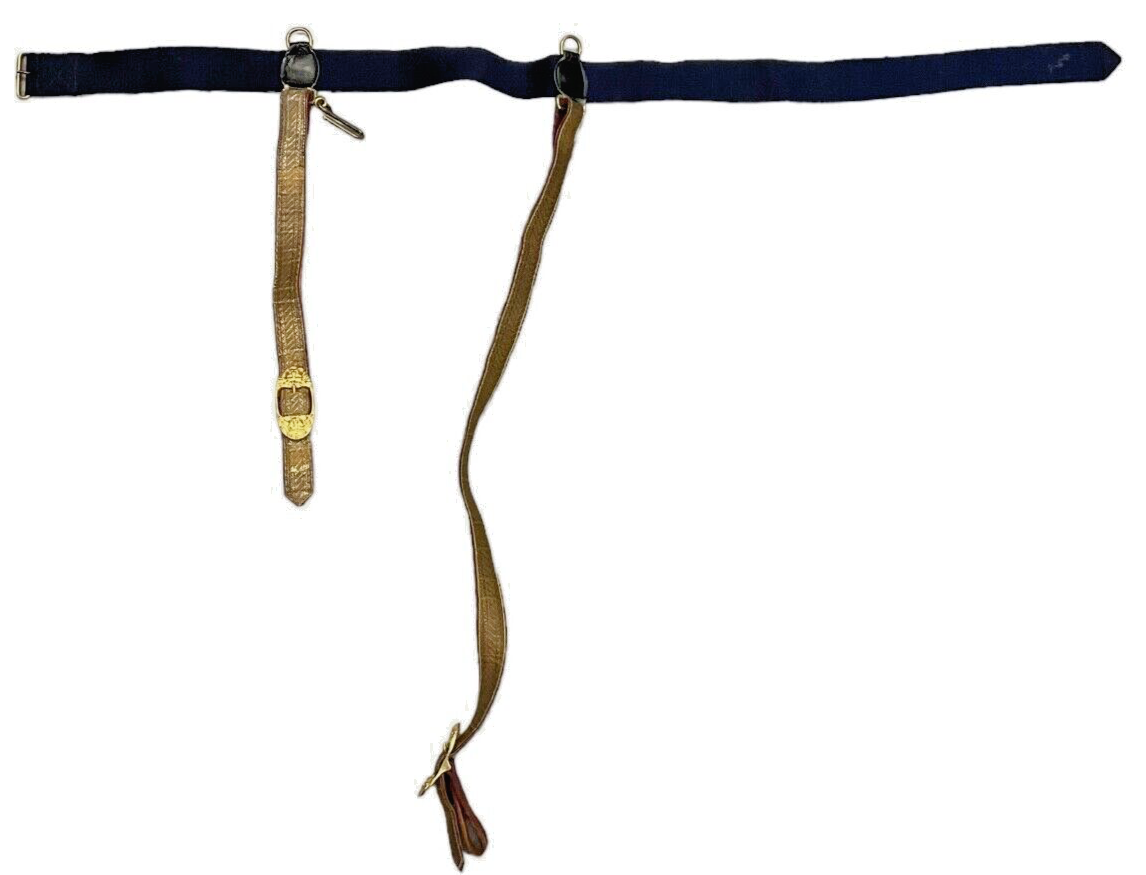 The “Canadian British RCA RA Artillery Officers Under Tunic Sword Belt and Slings” is a finely crafted piece of military regalia designed for officers in the Royal Canadian Artillery (RCA) and the Royal Artillery (RA) of Britain. These artifacts are tailored to be worn discreetly under the tunic, ensuring functional utility while maintaining a polished appearance. Constructed from high-quality leather, the sword belt and slings are both durable and comfortable for extended wear. The set includes adjustable slings made to securely hold a ceremonial sword, epitomizing the honor and tradition of artillery officers. These items are an essential part of an officer’s uniform, symbolizing their rank and service. Perfect for collectors, reenactors, or historians, this ensemble offers a tangible connection to the proud heritage and disciplined precision of artillery forces in Canadian and British military history.