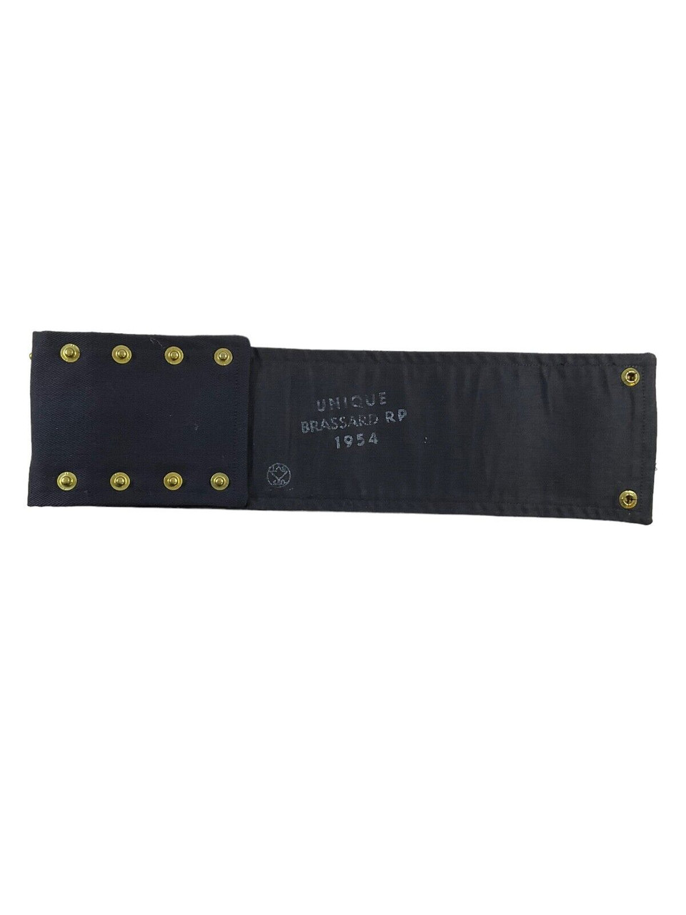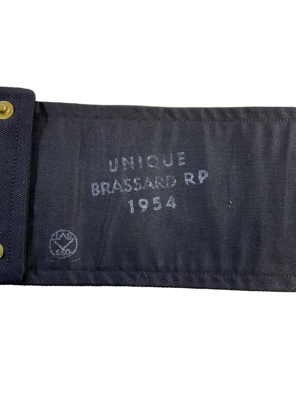 The Canadian British Regimental Police RP 1954 Dated Arm Brassard is a fascinating piece of military memorabilia from the mid-20th century. This brassard, or arm badge, was worn by members of the Regimental Police, denoted by the initials “RP.” The brassard, dated 1954, represents the close post-WWII ties between Canadian and British military forces. Crafted from durable material, it would have been prominently displayed on the arm of the wearer, signifying their authority and role in maintaining order within the regiment. This collectible item not only showcases the insignia and symbols representative of military policing units but also serves as a tangible reminder of the historical period during which it was used. For collectors of military artifacts or historians interested in the era, the 1954 dated arm brassard provides a unique glimpse into the regimental practices and international cooperation of the time.