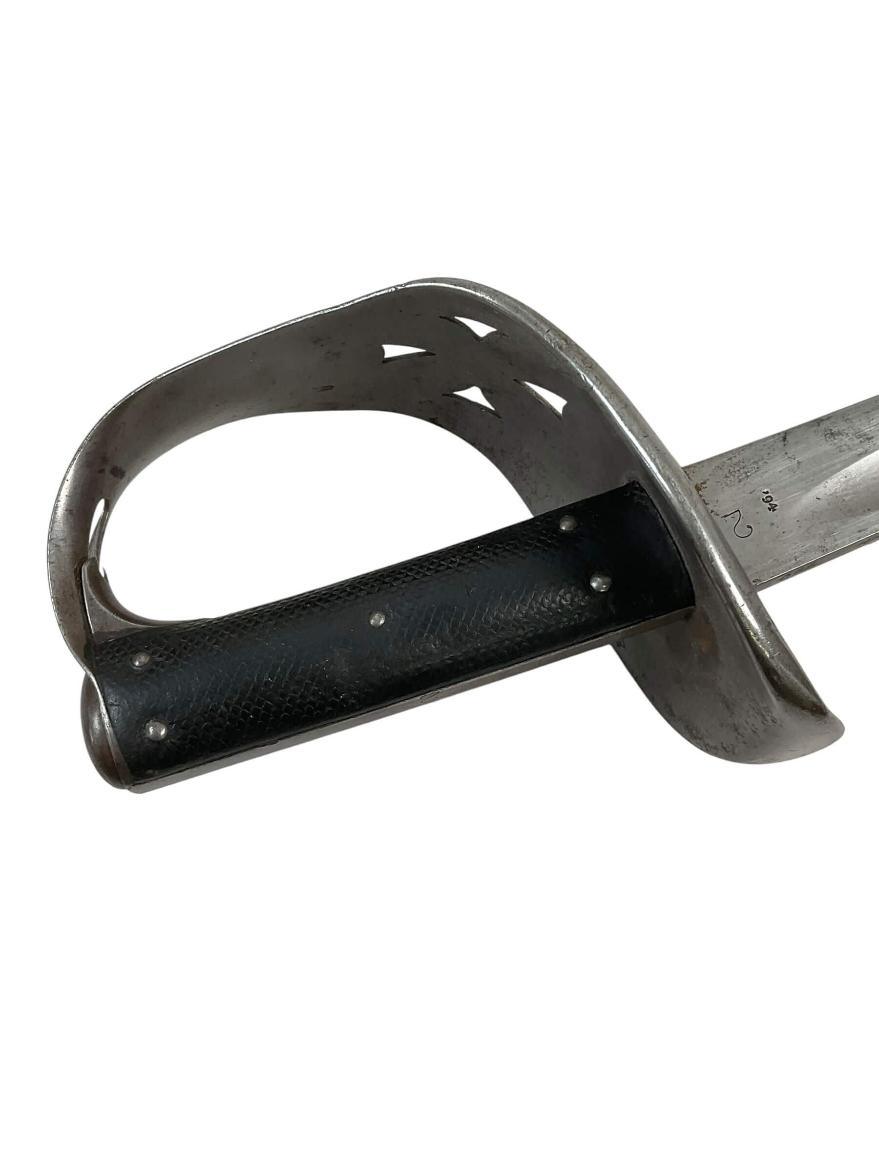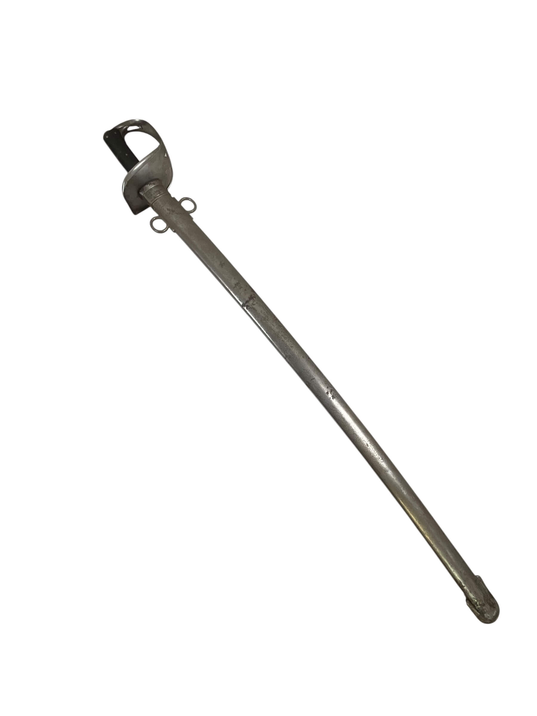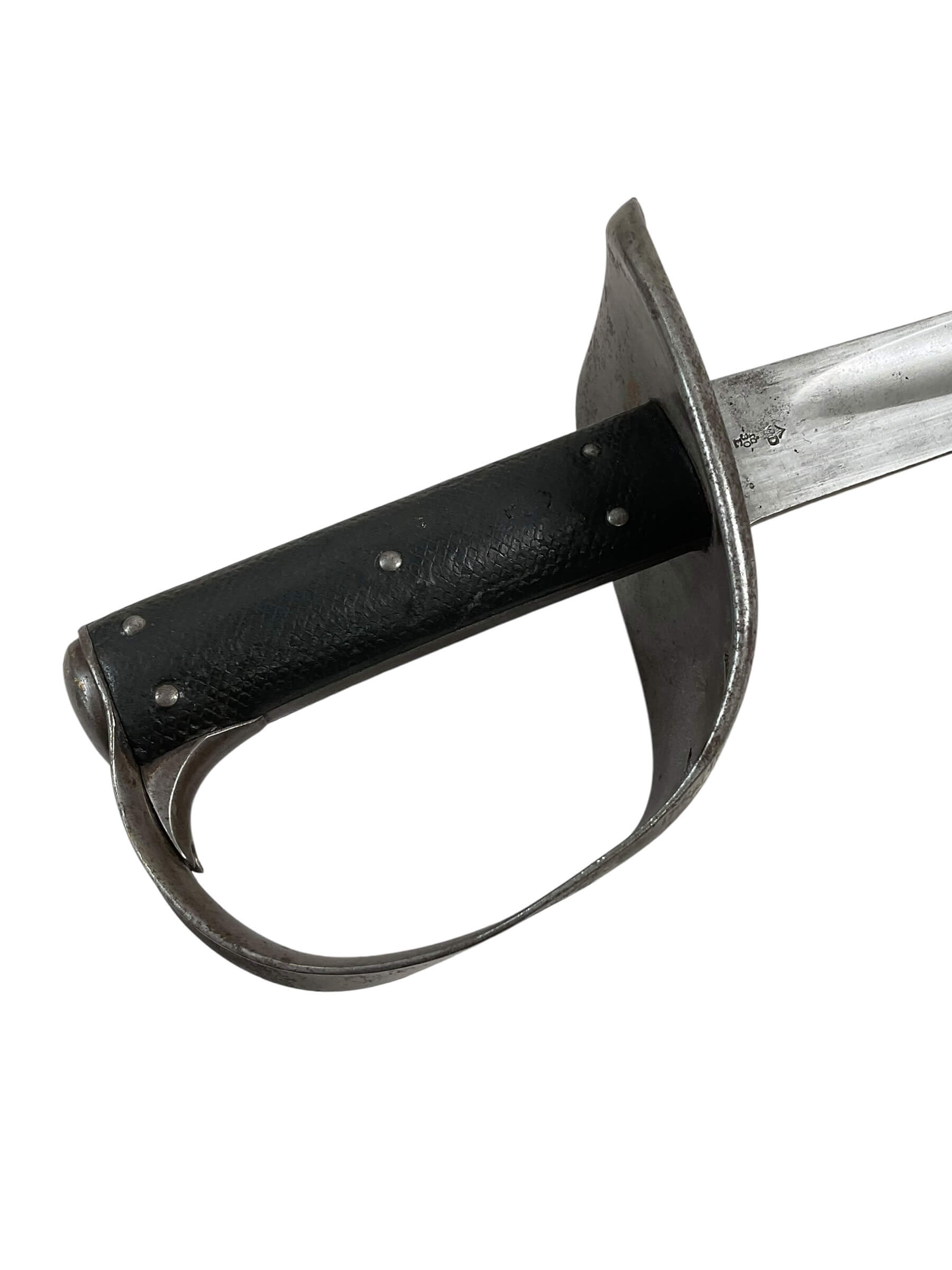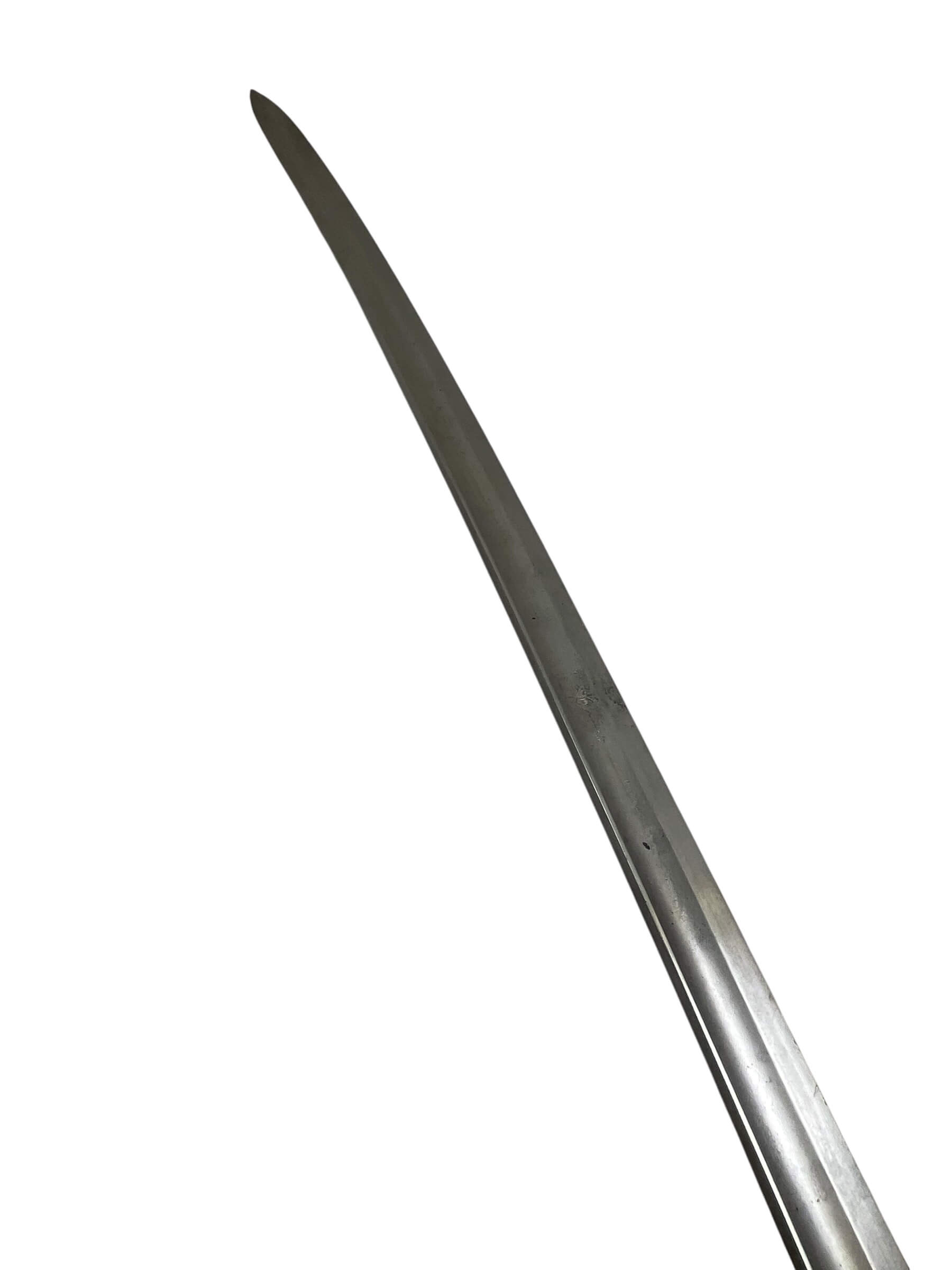 The Canadian Cavalry 1890 Pattern Troopers Sword with Scabbard marked FGH is a military edged weapon issued to Canadian cavalry units in the late nineteenth and early twentieth centuries. This model follows the 1890 pattern, characterized by its straight, single-edged blade designed for thrusting and cutting. The hilt typically features a bowl guard to provide hand protection, and the grip is bound in leather with wire wrapping for secure handling. The included steel scabbard is fitted with suspension rings for attachment to a cavalryman’s equipment, facilitating ease of carry when mounted. The “FGH” marking on this sword refers to the Fort Garry Horse, a notable Canadian cavalry regiment. Such markings are key to identifying regimental issue and are of particular interest to collectors and historians. The 1890 Pattern Troopers Sword represents the transition between traditional cavalry weaponry and the increasing mechanization of armed forces in the early twentieth century.