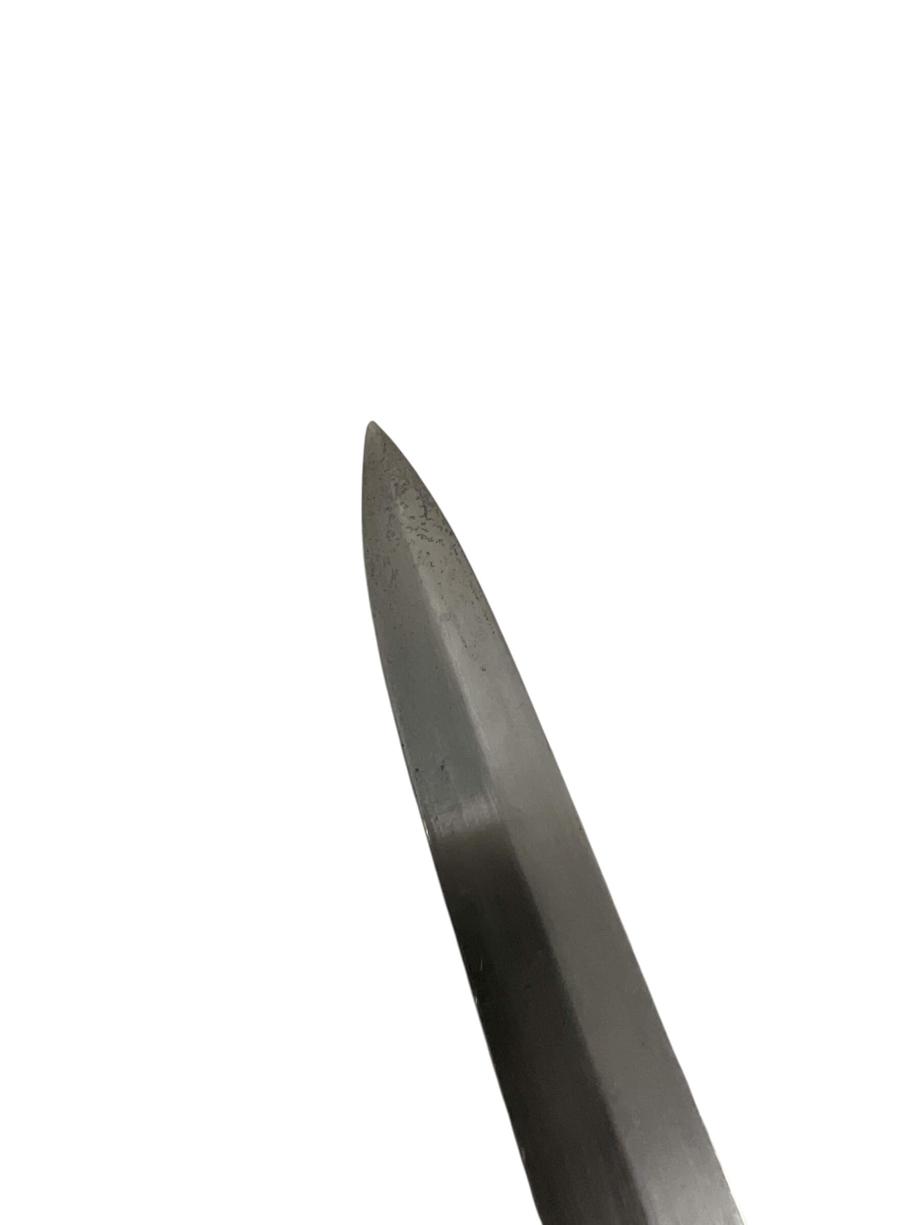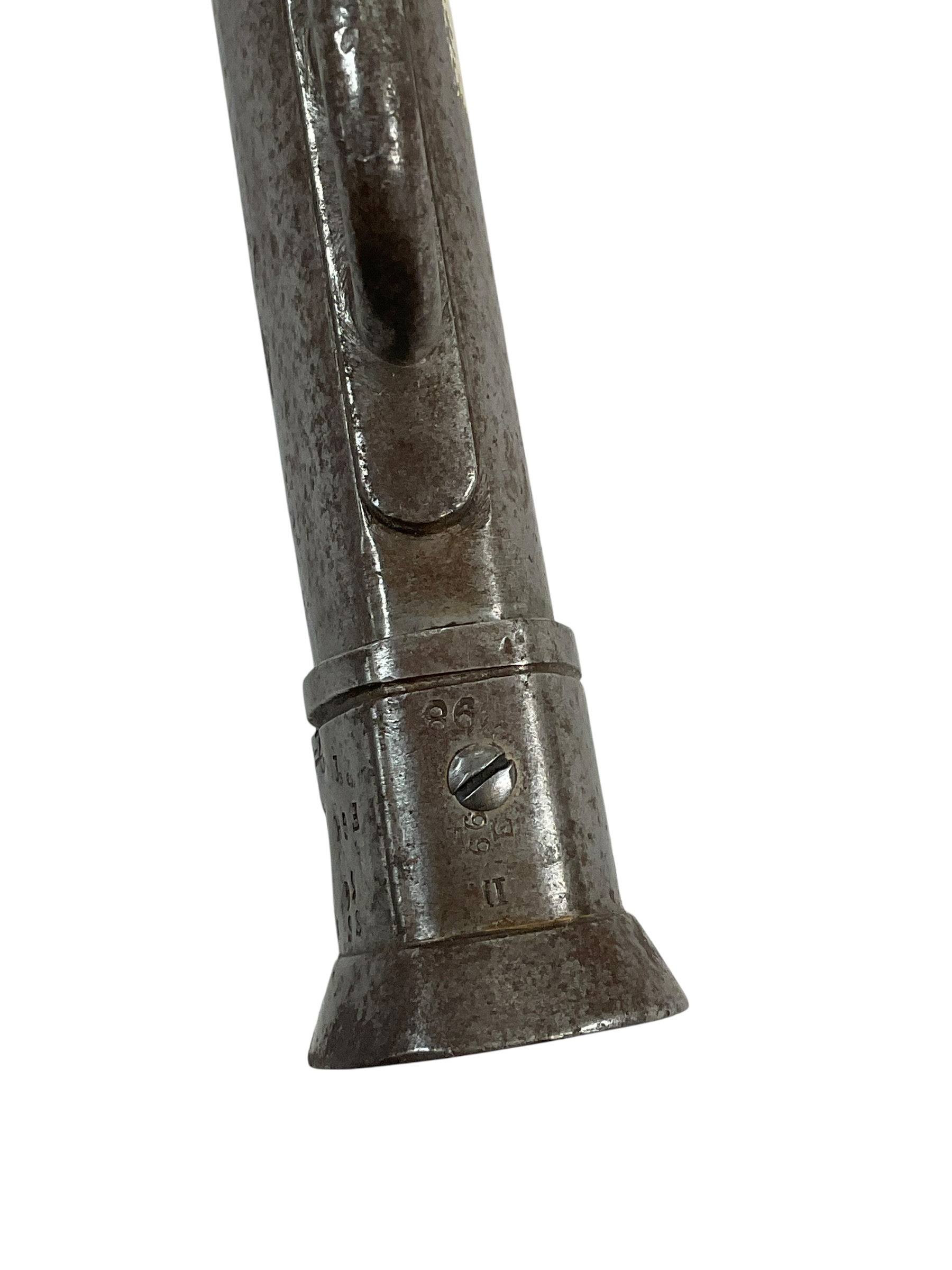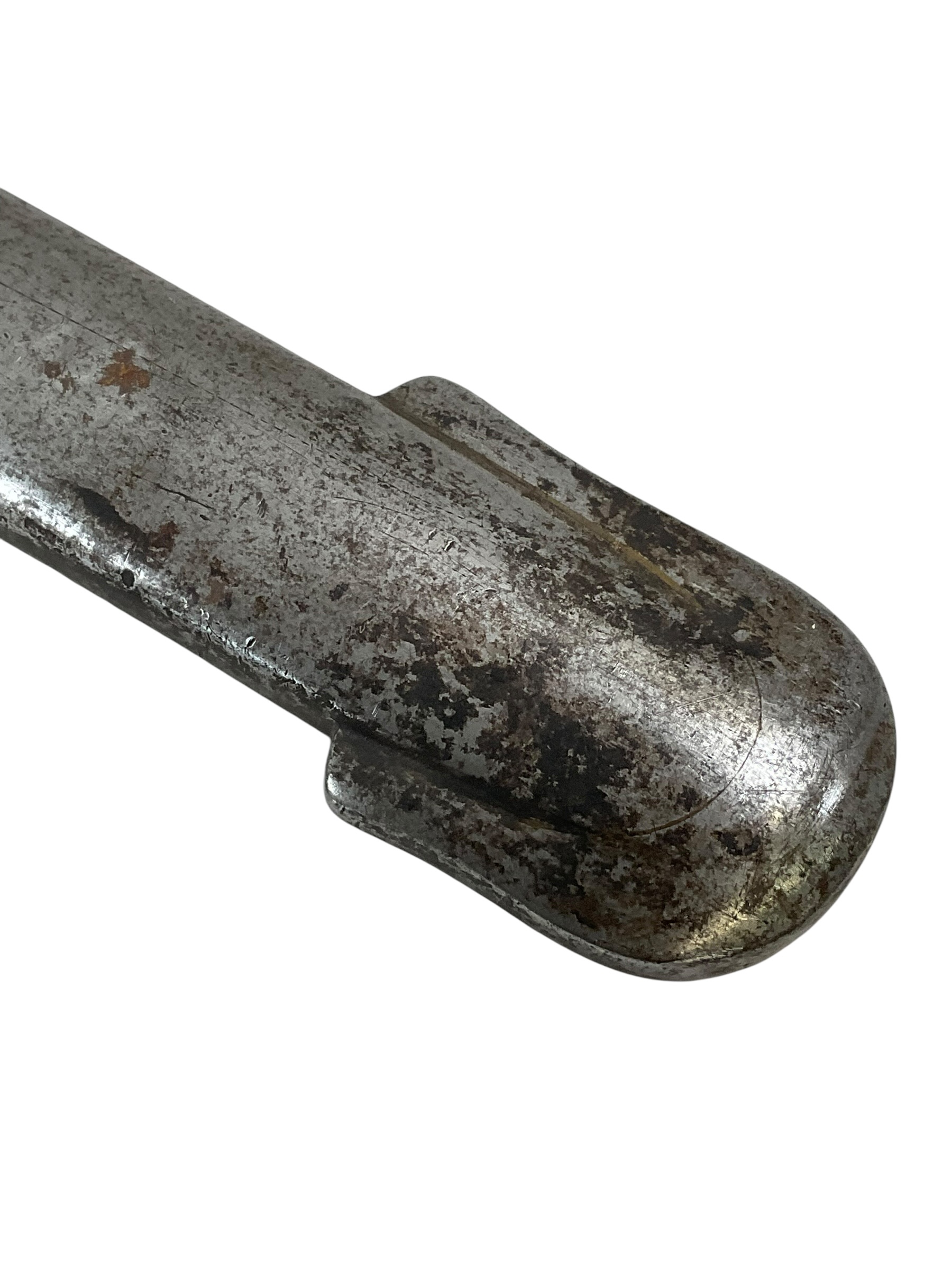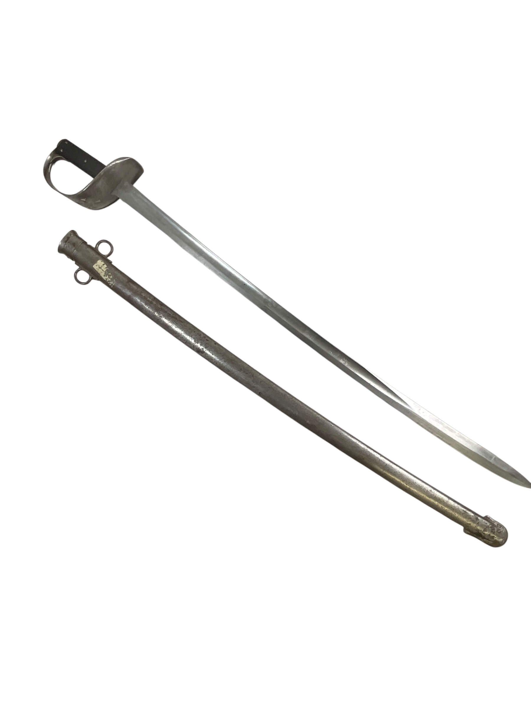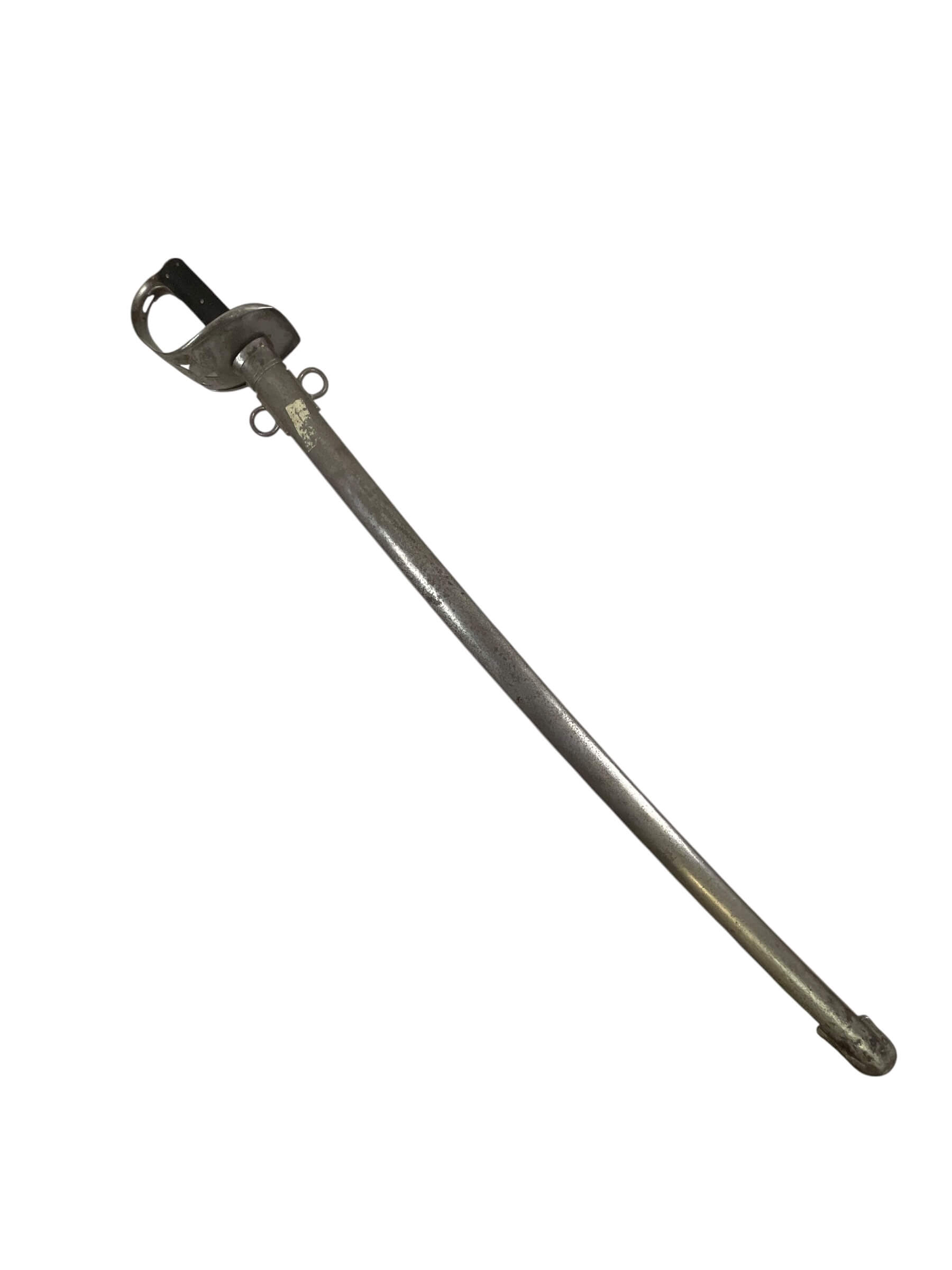 The Canadian Cavalry 1890 Pattern Troopers Sword with Scabbard marked FGH is a military edged weapon issued to Canadian cavalry units in the late nineteenth and early twentieth centuries. This model follows the 1890 pattern, characterized by its straight, single-edged blade designed for thrusting and cutting. The hilt typically features a bowl guard to provide hand protection, and the grip is bound in leather with wire wrapping for secure handling. The included steel scabbard is fitted with suspension rings for attachment to a cavalryman’s equipment, facilitating ease of carry when mounted. The “FGH” marking on this sword refers to the Fort Garry Horse, a notable Canadian cavalry regiment. Such markings are key to identifying regimental issue and are of particular interest to collectors and historians. The 1890 Pattern Troopers Sword represents the transition between traditional cavalry weaponry and the increasing mechanization of armed forces in the early twentieth century.