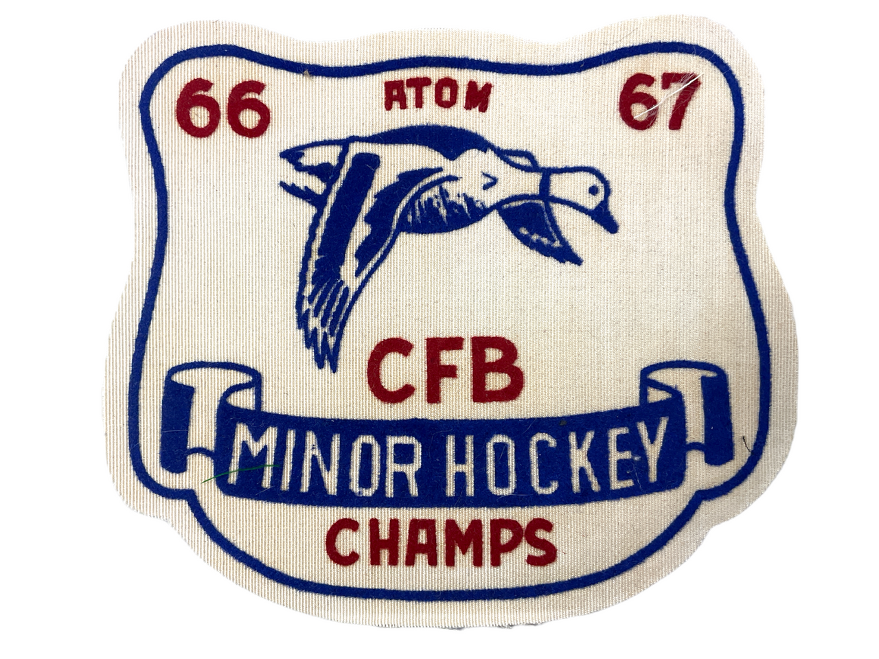The Canadian CFB Minor Hockey Champs 1966-67 Atom Jacket Patch is a nostalgic memento from a historic minor hockey championship. This intricately designed patch commemorates the triumph of a youth hockey team at the Canadian Forces Base (CFB) during the 1966-67 season in the Atom age category. Measuring a few inches in diameter, the patch typically features bold stitching and vivid colors depicting the team’s achievement. This collectible piece serves as a proud reminder of youthful dedication, teamwork, and the sporting spirit that defined an era. Perfect for sports memorabilia collectors or former players, it encapsulates a cherished moment in Canadian minor hockey history. Display or wear this patch to honor the legacy of those young champions and celebrate the enduring heritage of Canadian hockey culture.