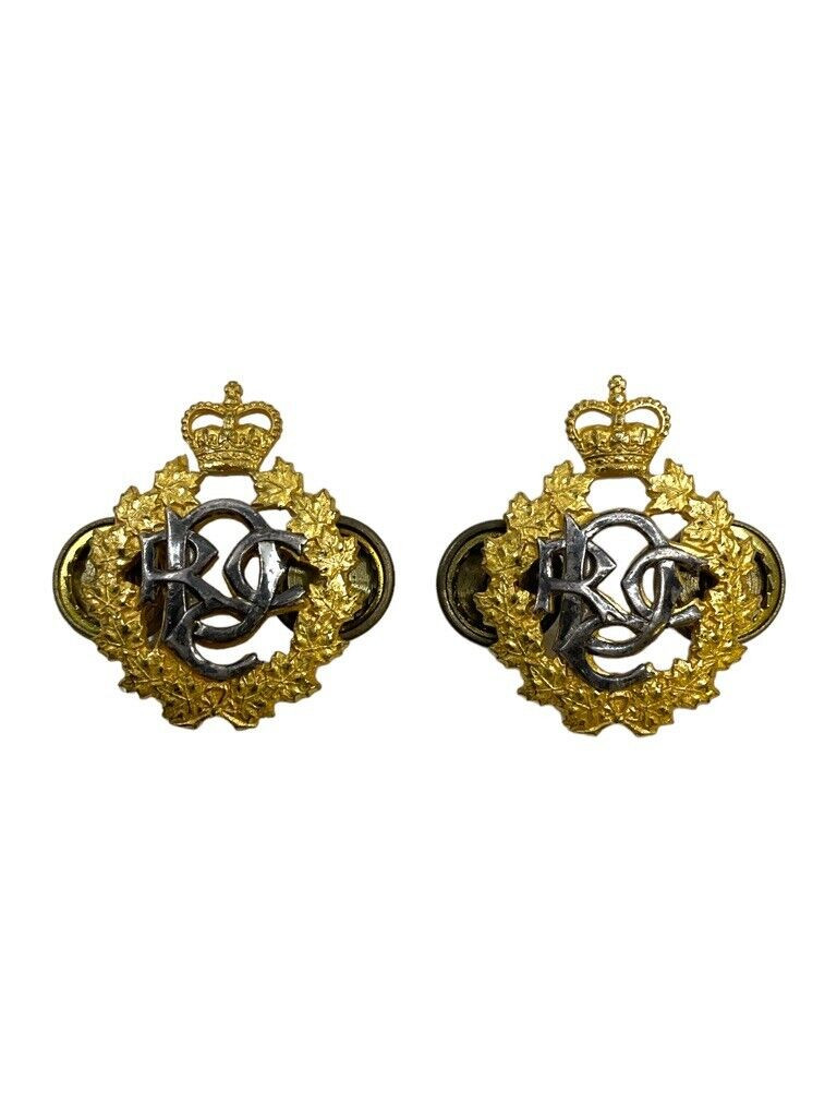 The Canadian Dental Corps RCDC Gilt Officers Collars Insignia Pair is a distinguished set of emblems representing the esteemed Royal Canadian Dental Corps. Crafted with precision, these gilt insignias boast a lustrous, gold-plated finish that exudes elegance and authority. Each piece bears the distinctive heraldry of the RCDC, symbolizing the commitment and professionalism of the dental officers who serve within the Canadian Armed Forces. These collar insignias are designed to be worn with formal military uniforms, signifying the officer’s rank and affiliation with the dental corps. Perfectly suited for collectors, historians, or military personnel, this insignia pair offers both historical significance and exquisite craftsmanship, making them a prized addition to any collection of military memorabilia.