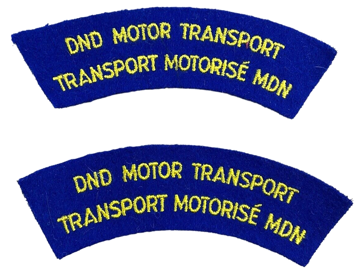 Canadian DND Motor Transport Shoulder Title Insignia Pair The ‘Canadian DND Motor Transport Shoulder Title Insignia Pair’ represents a distinguished set of military insignia worn by personnel within the Department of National Defence (DND) in Canada, specifically those affiliated with the motor transport units. These insignias are typically affixed to the uniform’s shoulder area, signifying the wearer’s role in military logistics and vehicle operations. The design often incorporates elements that reflect the heritage and tradition of the Canadian armed forces, possibly featuring text and symbols associated with motor transport duties. Collectors and historians highly value such insignia pairs for their craftsmanship and the historical significance they embody. This shoulder title pair not only serves as an identification piece but also as a symbol of the vital support role these units play in ensuring the mobility and readiness of the Canadian military forces.