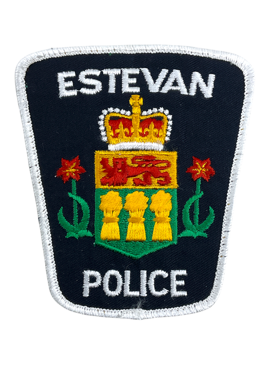 The Canadian Estevan Saskatchewan White Edge Police Patch is a distinct and symbolic emblem used by the Estevan Police Service located in Estevan, Saskatchewan. This patch features a classic shield shape, distinguished by its striking white border that adds contrast and visibility. At its center, the patch proudly displays the official crest of the Estevan Police Service, incorporating elements that reflect the history, community values, and commitment to public safety in Estevan. The intricate details and vibrant colors of the crest symbolize the unity and diligence of the police force in protecting and serving their community. This patch is not only a badge of authority but also a piece of heritage that represents the dedication and professionalism of the Estevan Police. Collectors and law enforcement enthusiasts would value this patch for its uniqueness and the rich history it embodies.