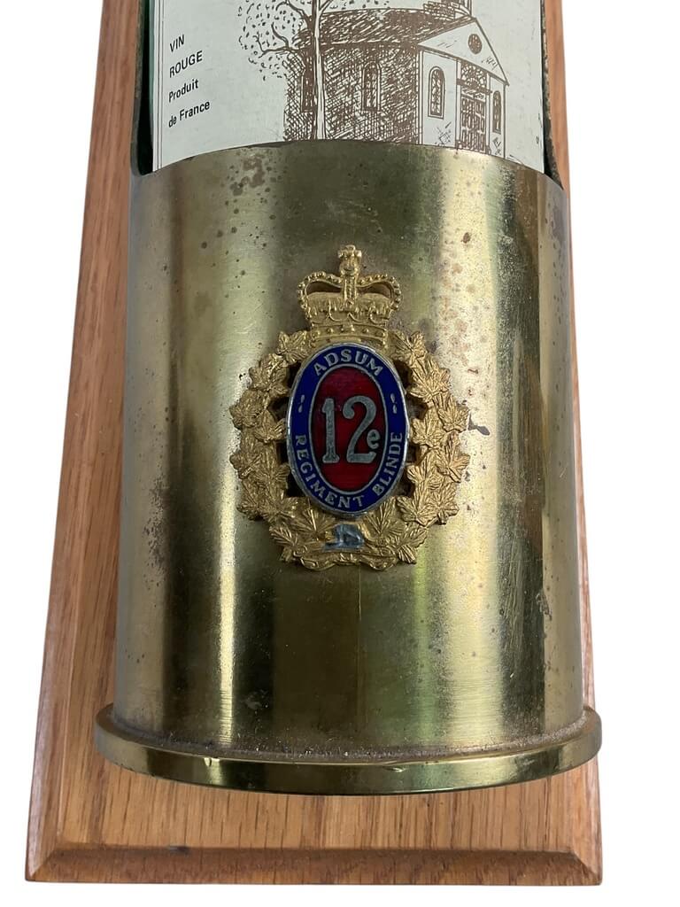 Canadian Forces 12th Regiment de Blinde 76mm Trench Art With Regimental Wine Bottle EMPTY