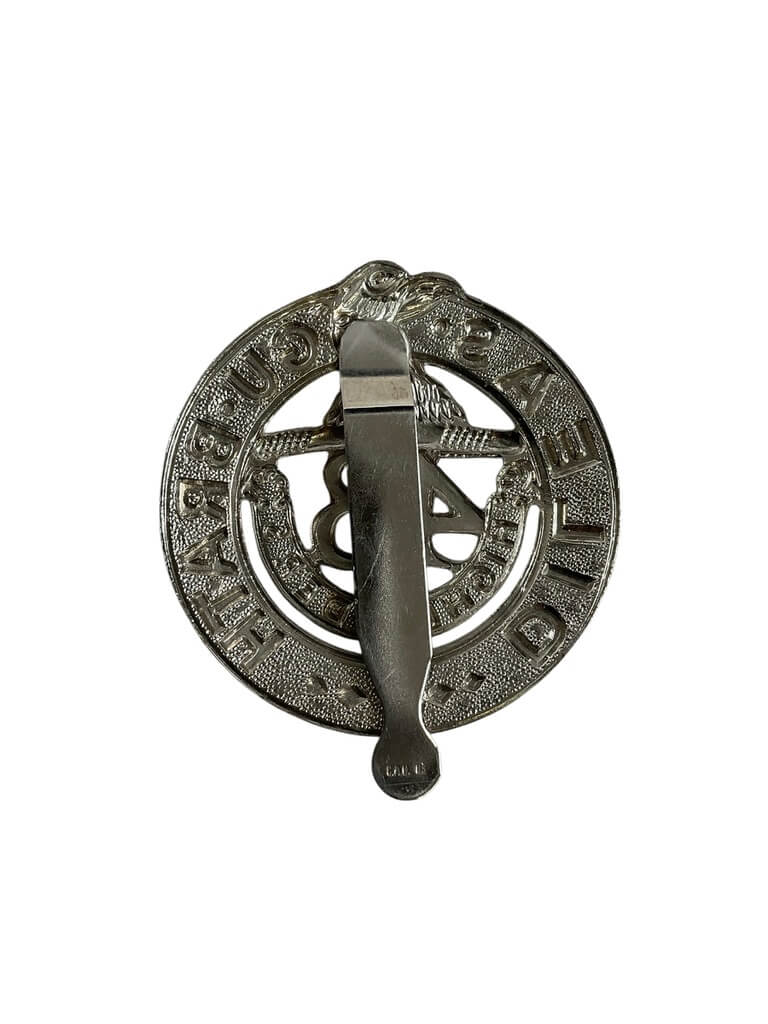 The Canadian Forces 48th Highlanders Cap Badge is a esteemed symbol of honor, tradition, and loyalty. This emblem of military history is intricately designed, featuring a crowned wreath encircling a stately 48, a representation of the 48th Highlanders Regiment. The badge further showcases the regiment’s Scottish roots with a St. Andrew’s cross and a Highland warrior in traditional attire, armed with a broadsword. It is typically crafted from durable materials such as bronze or brass, ensuring its longevity. This badge is a paramount part of the Canadian Forces uniform, worn proudly on the Glengarry cap by the members of the 48th Highlanders. It serves as a testament to the bravery and dedication of the soldiers who have served under its banner. Collectors and history enthusiasts alike value this badge for its rich historical significance and unique design.