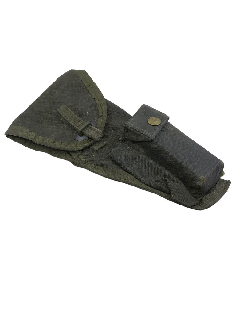 The Canadian Forces 82 Pattern Browning Hi Power Holster is a robust and reliable accessory designed to meet the demanding needs of military personnel. Crafted from durable materials, this holster ensures the secure carrying of the Browning Hi Power pistol, a trusted sidearm for the Canadian military. The holster features a quick-release mechanism, providing swift access in critical situations, and adjustable straps for a customized fit on various duty belts. Its weather-resistant construction allows for exceptional performance in diverse environmental conditions, from extreme cold to heavy rain. The 82 Pattern design reflects a blend of functionality and Canadian military heritage, making it an essential piece of equipment for soldiers and firearm enthusiasts alike. Whether for active duty, training exercises, or collection purposes, this holster represents the standard of excellence upheld by the Canadian Forces.