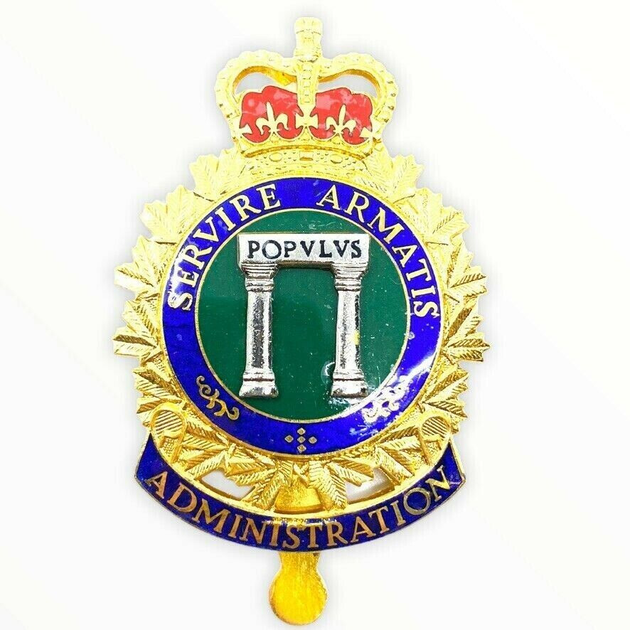 The Canadian Forces Administration Enamelled Cap Badge is a distinguished emblem representing the administrative arm of the Canadian military. This intricately designed badge showcases the professionalism and dedication of those who manage and support the operational capabilities of the Canadian Forces. Crafted from high-quality materials, the badge features a striking enamel finish, ensuring both durability and a polished appearance. The design often includes iconic Canadian symbols such as maple leaves, the national coat of arms, or other elements signifying the country’s proud military heritage. Worn on the cap, this badge signifies the wearer’s commitment to maintaining the organizational efficiency and logistical prowess essential to the armed forces. Whether part of a current uniform or a collectible item, the Canadian Forces Administration Enamelled Cap Badge stands as a symbol of honor, service, and meticulous attention to the vital support roles within the Canadian military.