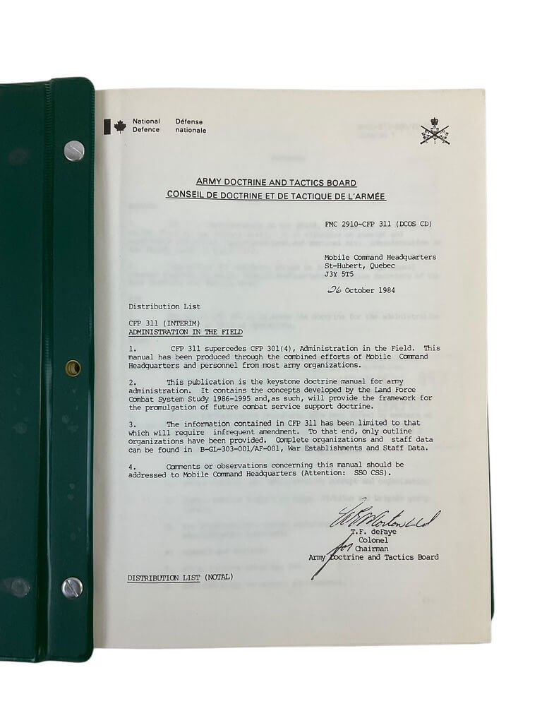 Canadian Forces Administration in the Field Manual Reference Book