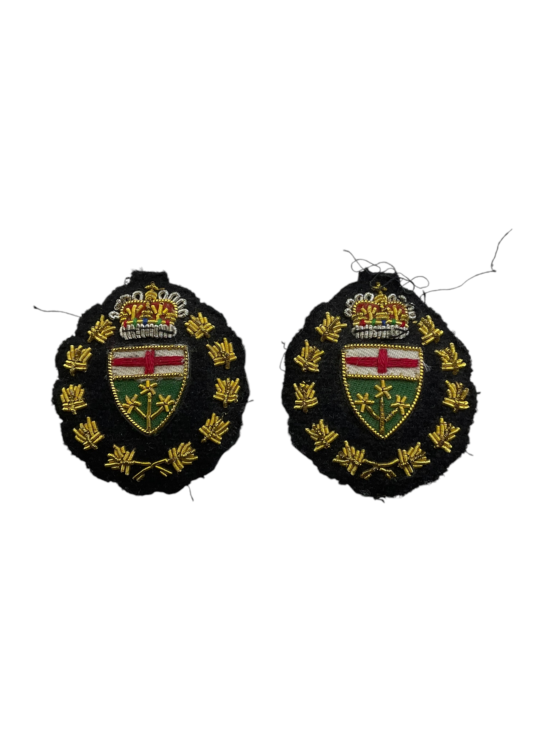 This set of ‘Canadian Forces Aide De Camp Ontario Shoulder Insignia Pair’ is an important and iconic symbol representing the prestigious and historic position of Aide De Camp in the Canadian Forces in Ontario. The pair of insignia is crafted meticulously with fine details, reflecting the high standards and values of the Canadian military. The design features the official emblems and colors of the Ontario region. Made with high-quality materials, these insignias are durable and resistant to wear and tear. They can be attached securely to the shoulder of a uniform, making them an essential part of the official dress code. This pair of insignia is not just a badge, but a mark of honor, duty, and commitment towards serving the nation. Ideal for military enthusiasts, historians, or serving officers, these insignias are a significant part of Canada’s military heritage.