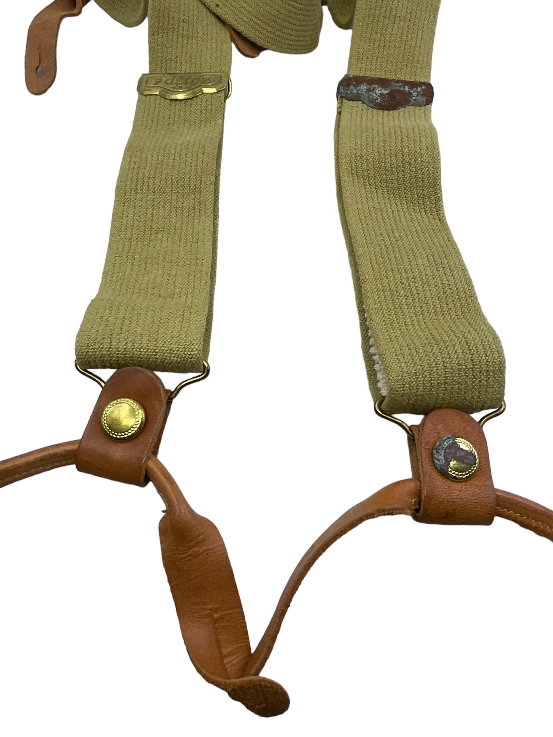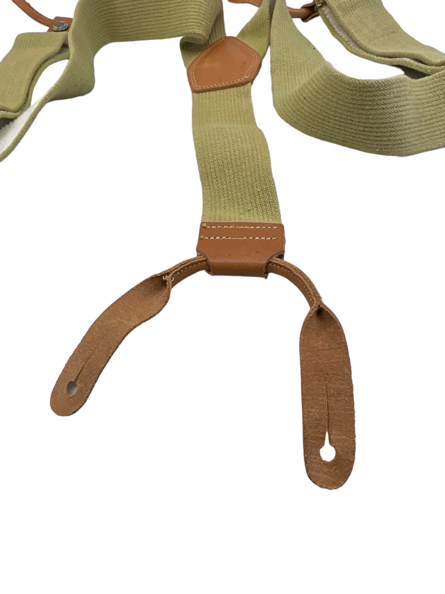 These vintage Canadian Forces Army suspenders, dated from 1989, are a remarkable piece of military history and a perfect addition to any collection of military memorabilia. Crafted for durability and functionality, these suspenders were designed to meet the rigorous demands of military life. Made with high-quality materials, they feature robust metal clasps and adjustable straps to ensure a secure and comfortable fit. The classic olive drab color reflects their use in the Canadian Forces. Each pair carries the authenticity of its 1989 manufacture date, making it not only a practical item but also a noteworthy collectible. Whether you are a history enthusiast, a military gear aficionado, or someone seeking unique and durable suspenders, these 1989 dated Canadian Forces Army suspenders offer a blend of historical significance and practical utility.