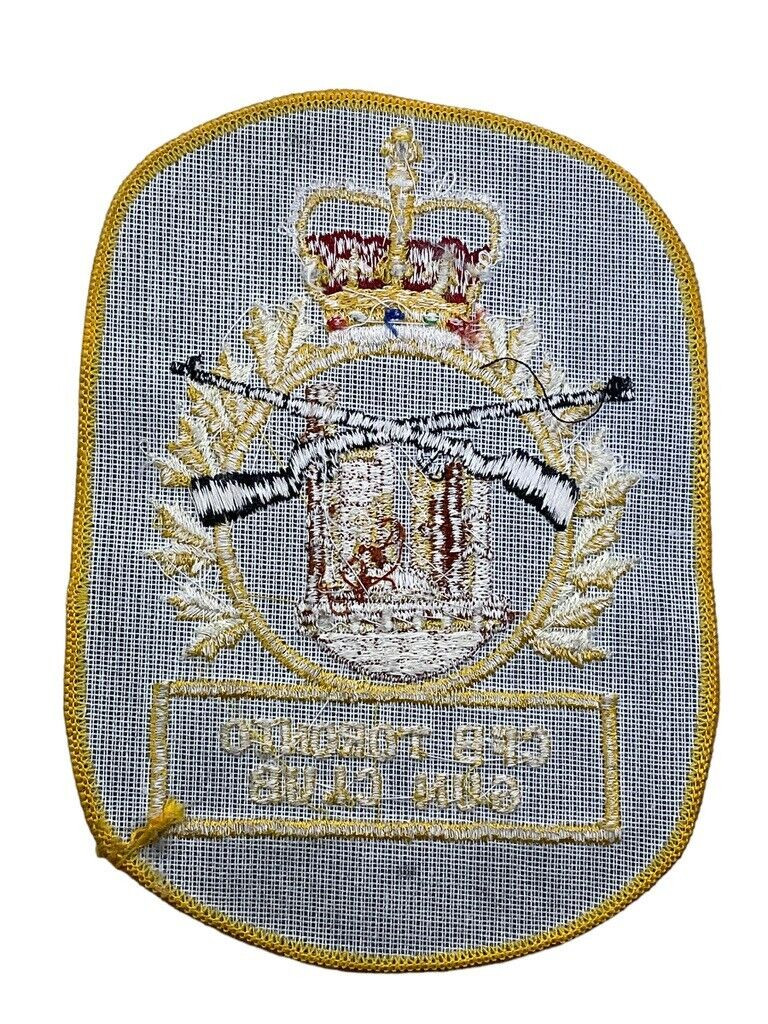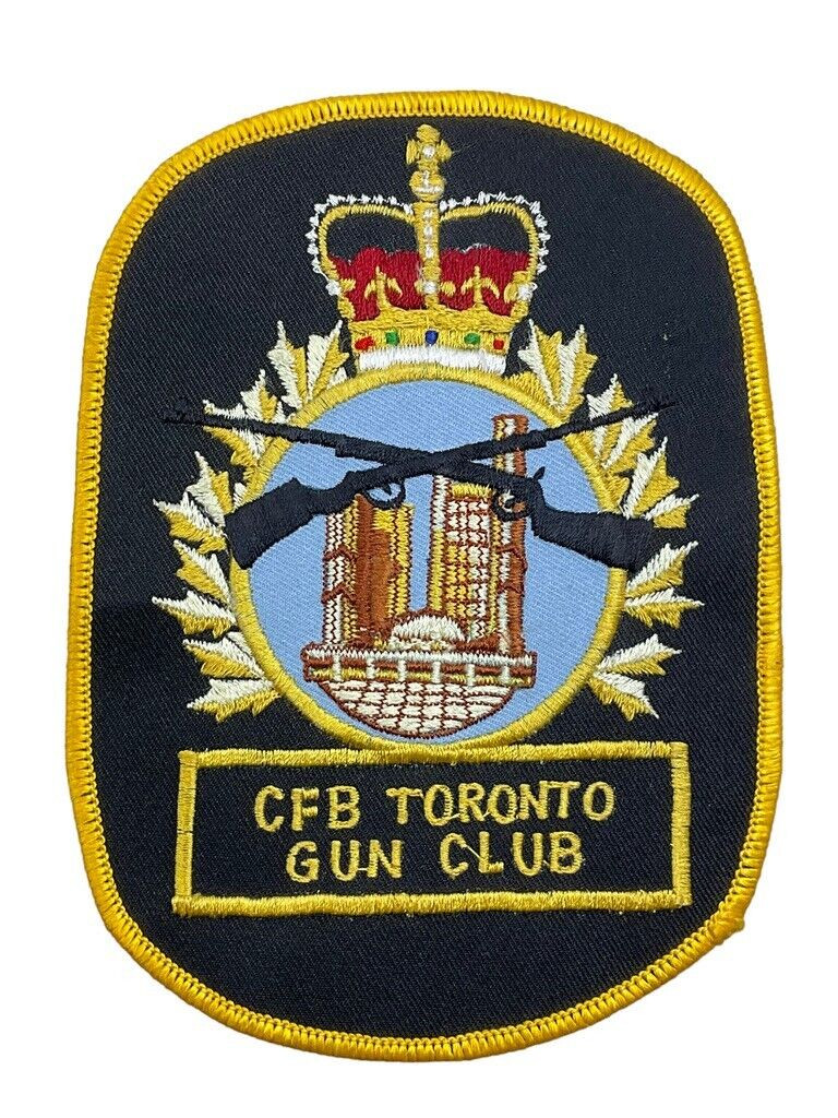 The “Canadian Forces Base Toronto Gun Club Patch Insignia” is a distinctive emblem representing the proud tradition and camaraderie of the gun club associated with the Canadian Forces Base in Toronto. This patch embodies the rich heritage of marksmanship, discipline, and fellowship among its members, both past and present. Crafted with intricate detail, the insignia features symbolic imagery that reflects the values and history of the club, such as crossed rifles, a maple leaf, and the club’s official colors. It serves not only as a mark of membership but also as a symbol of the dedication and skill of the military personnel and enthusiasts who participate in the club’s various shooting sports and activities. Displayed on uniforms, jackets, or memorabilia, this patch is a revered token of identity and pride for those associated with the CFB Toronto Gun Club.