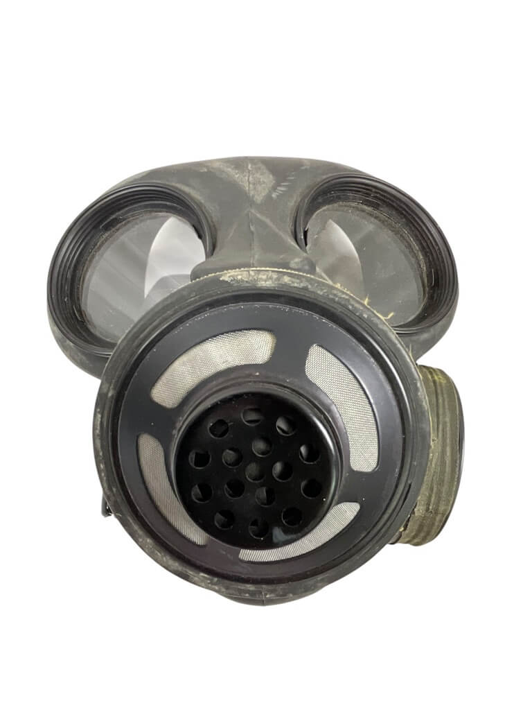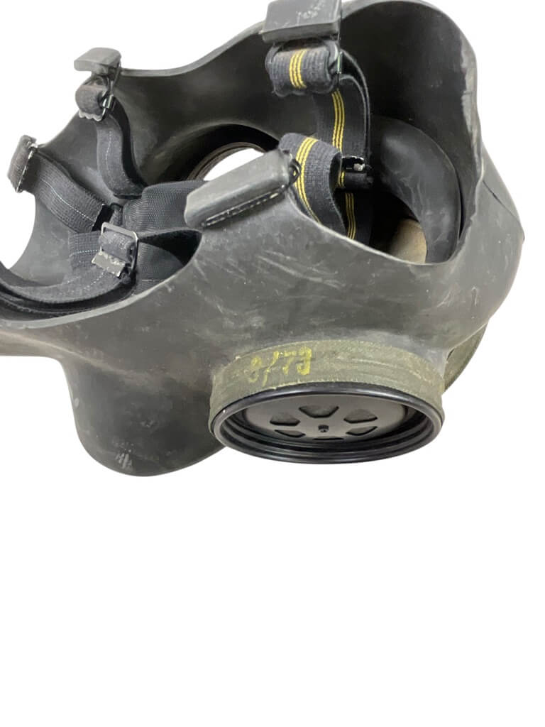 The Canadian Forces C2 Respirator is a protective gas mask designed for use by Canadian military personnel. Introduced in the 1980s, it serves as standard issue for defense against chemical, biological, and radiological threats. The C2 features a full-face design constructed from durable butyl rubber, incorporating dual optical lenses for wide-field visibility and an adjustable head harness for a secure fit. The respirator is equipped with a side-mounted filter canister compatible with standard NATO 40mm threads, allowing for quick replacement and effective filtration. Integrated voice emitter and drinking tube systems enable communication and hydration without mask removal. This example includes the original carry bag, providing convenient storage and transport. The C2 Respirator is a notable example of Cold War and modern-era Canadian military equipment, reflecting advancements in personal protective technology for armed forces. This item is intended for collectors, display, or reference purposes only, and is not certified for current protective use.