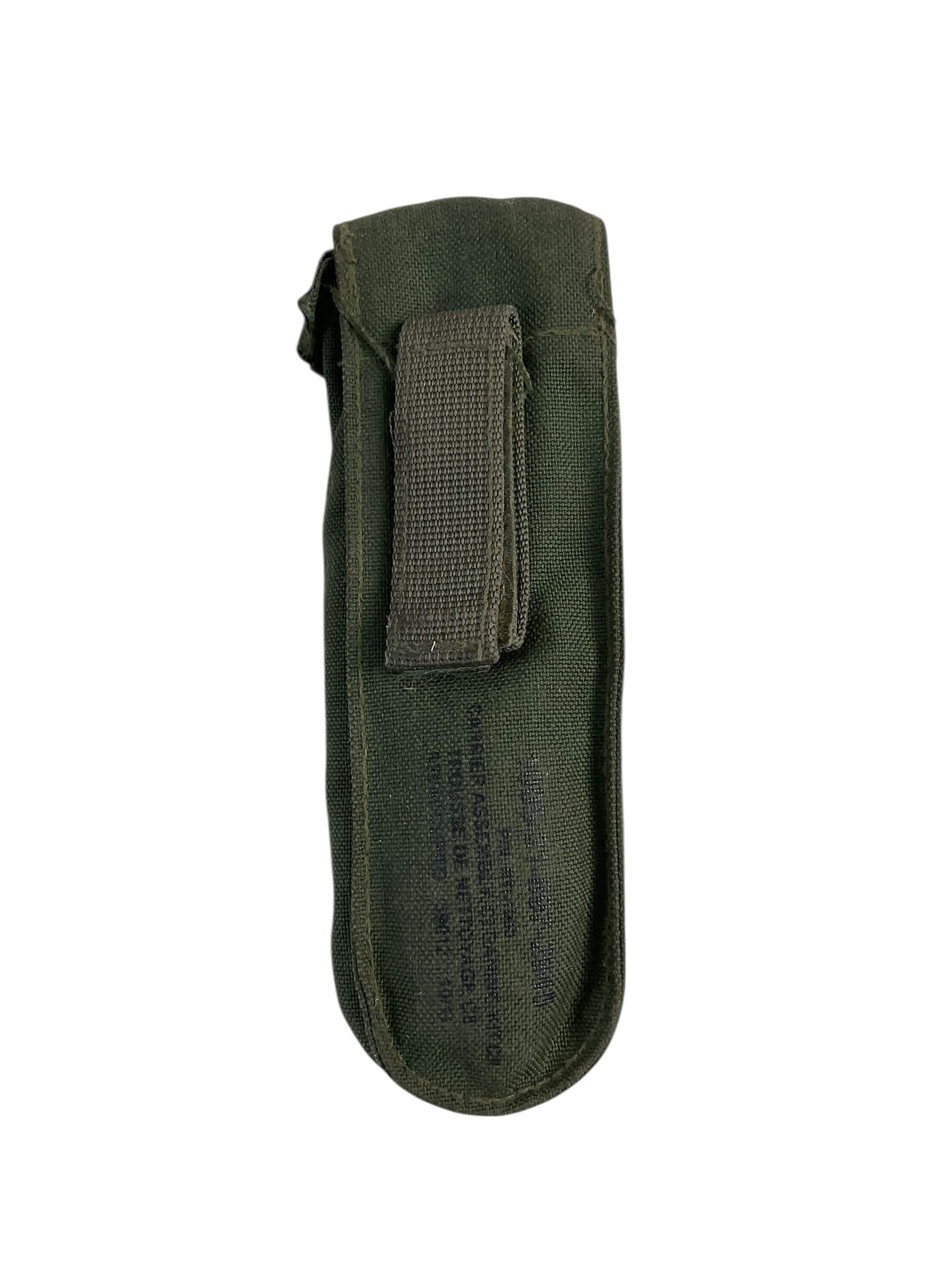 The Canadian Forces C7 Cleaning Kit with Contents is a standard-issue military cleaning set designed for maintenance of the C7 rifle, which is the Canadian adaptation of the M16 family. The kit comprises essential tools and components used to ensure reliable operation and longevity of the firearm. Typical contents include a sectional cleaning rod, bore brush, chamber brush, slotted tip, cleaning patches, oil bottle, and utility brush, all housed within a compact, durable pouch. The design facilitates thorough cleaning of the barrel, chamber, and small parts, both in the field and during routine armory maintenance. The pouch is usually constructed from sturdy synthetic material with securing snap or zipper closures for organized storage and easy transport. Issued to Canadian Forces personnel, this cleaning kit reflects Canadian military standards and requirements. It is suitable for collectors, military enthusiasts, or those requiring authentic accessories for maintenance or display of surplus C7 or similar rifles.