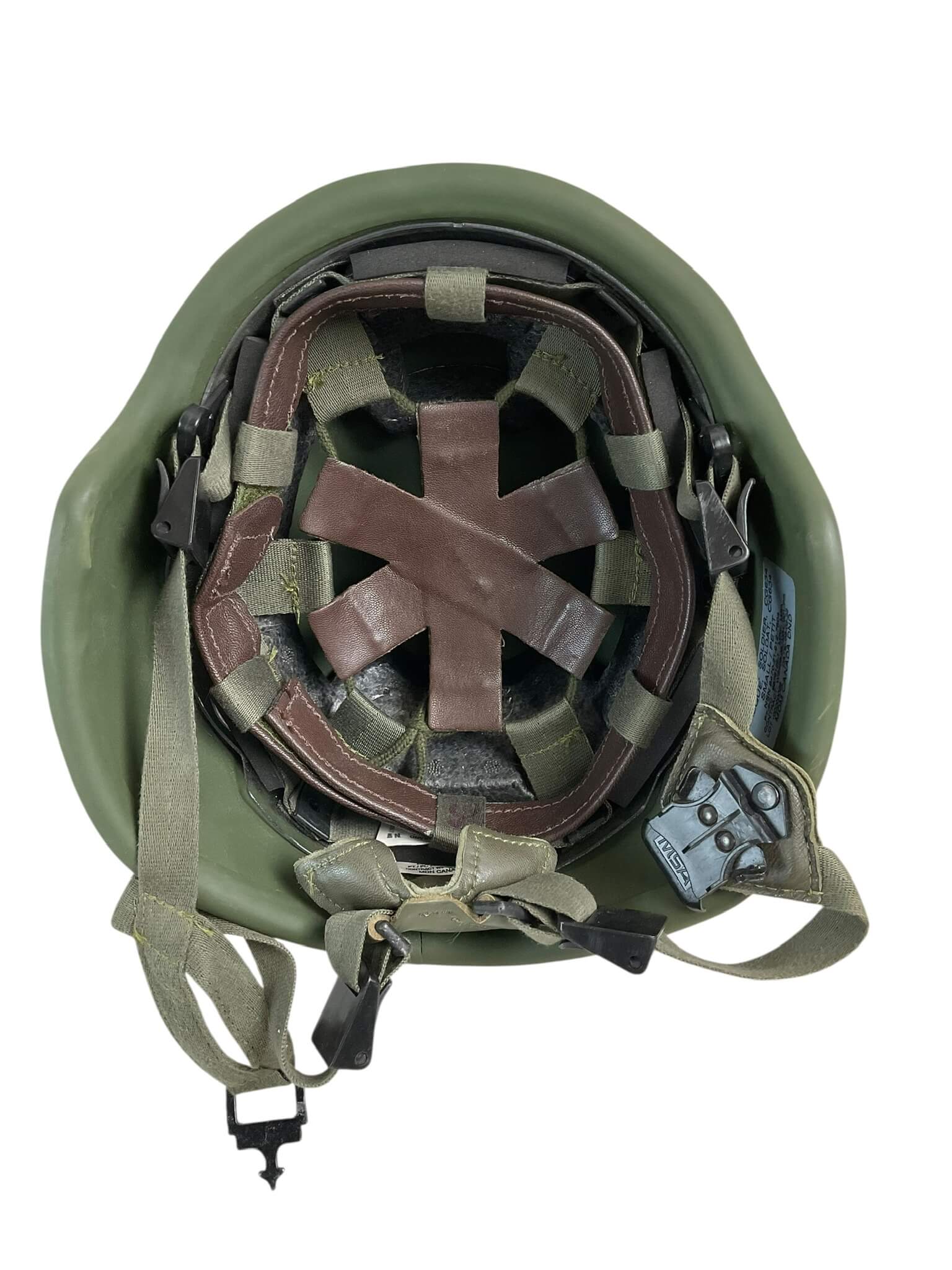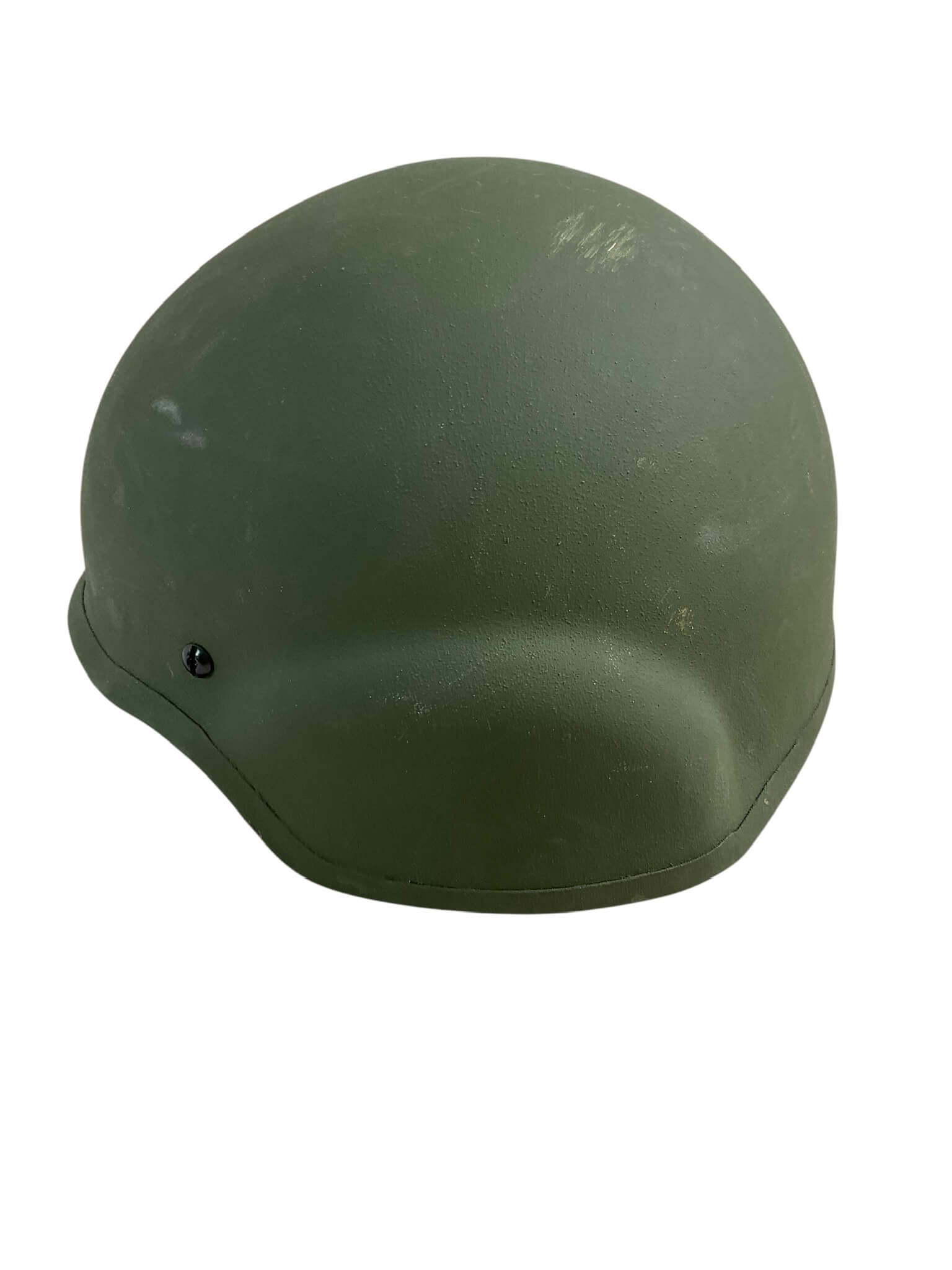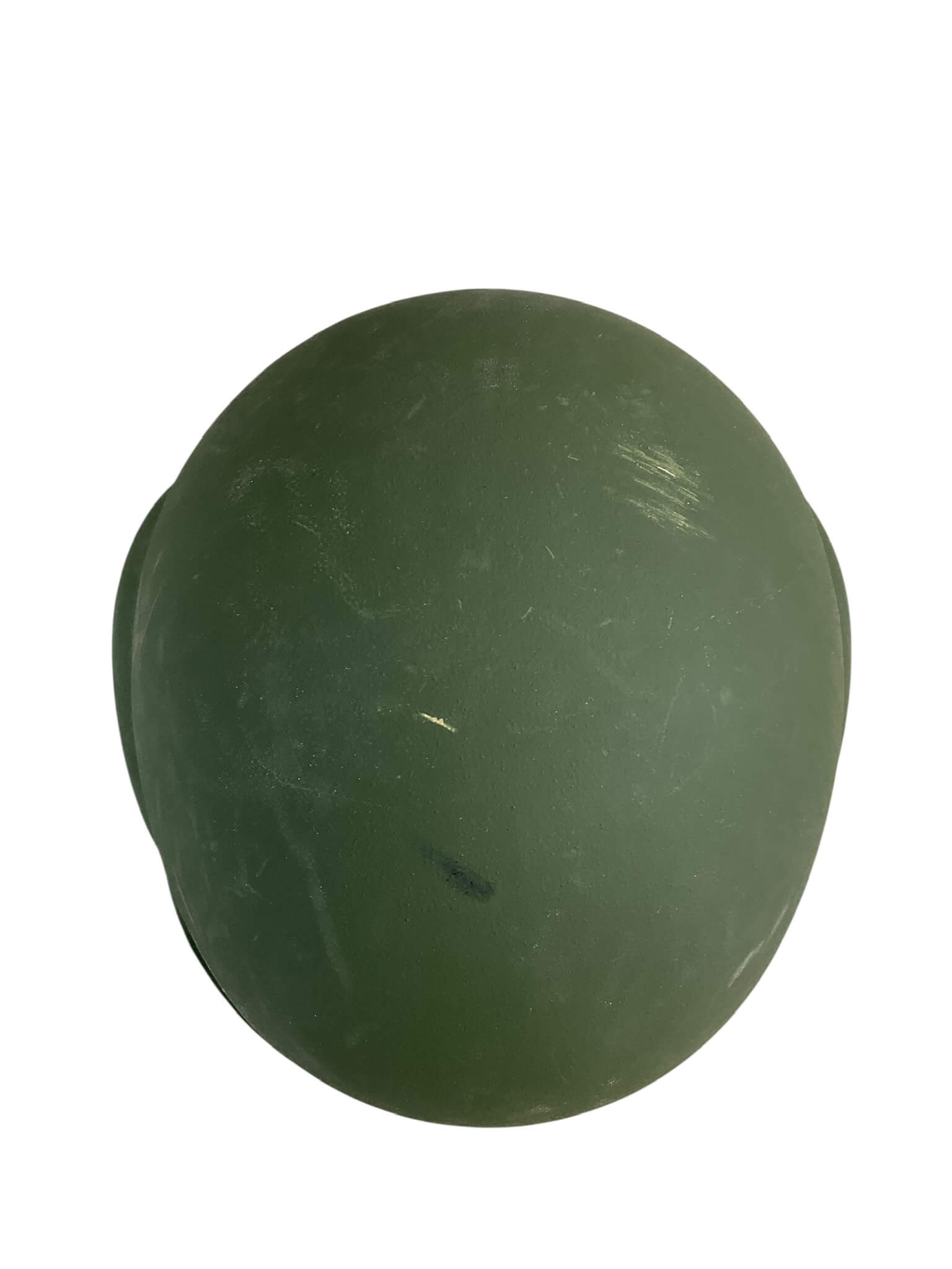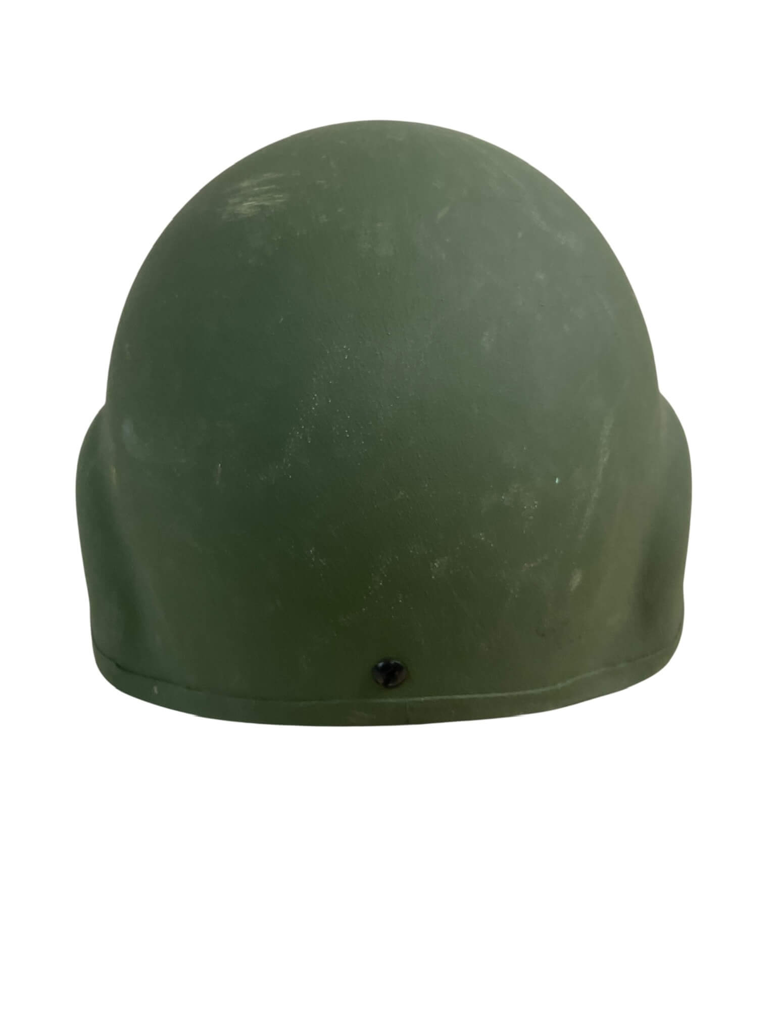 The Canadian Forces CG634 Helmet, size Small, is a military-grade safety gear used by the Canadian Armed Forces. Key features include a robust Kevlar shell for ballistic protection, a comfortable liner for fit adjustment, and a four-point chinstrap. Made for small-sized head circumference and noted for its durable quality.