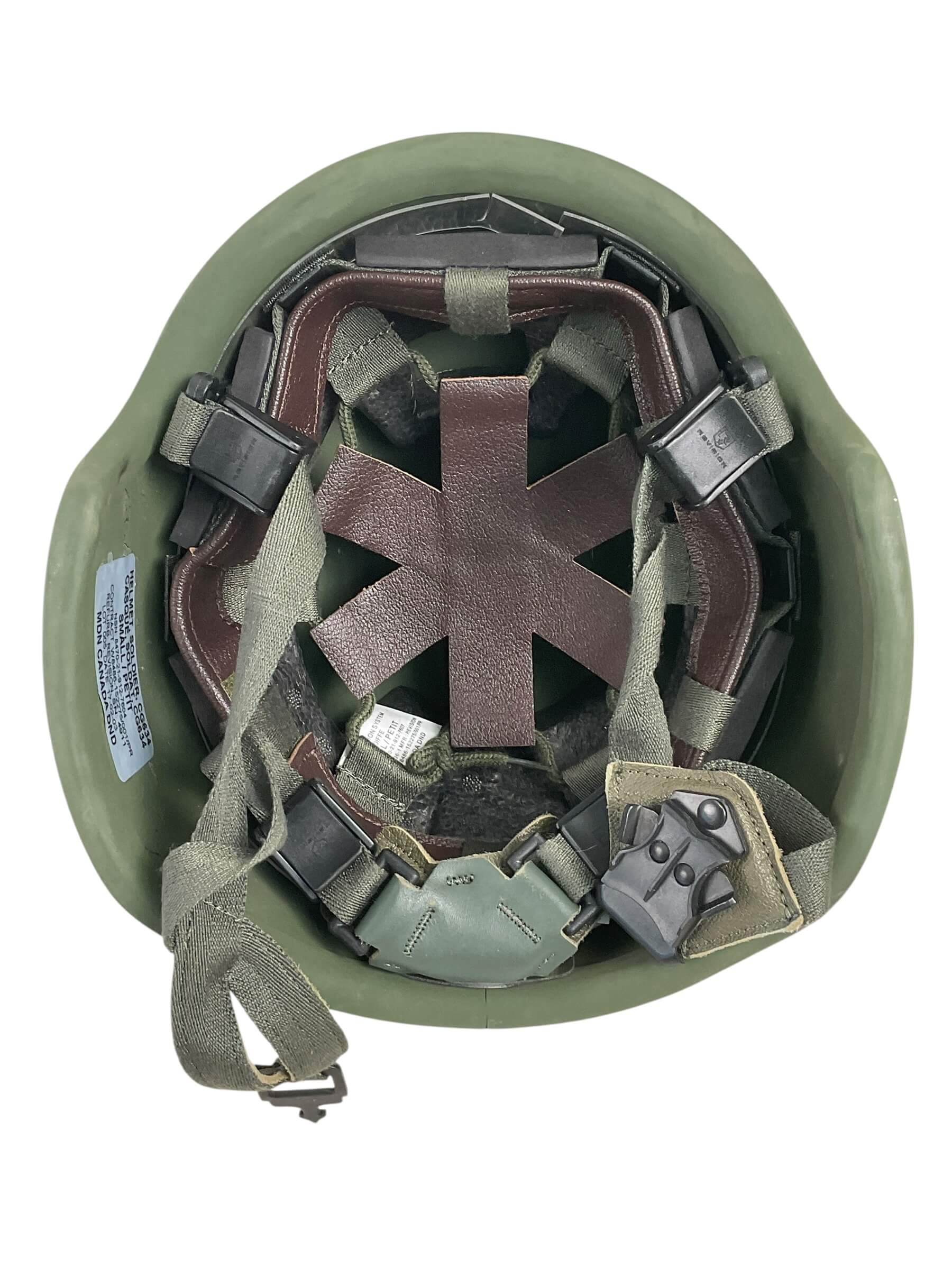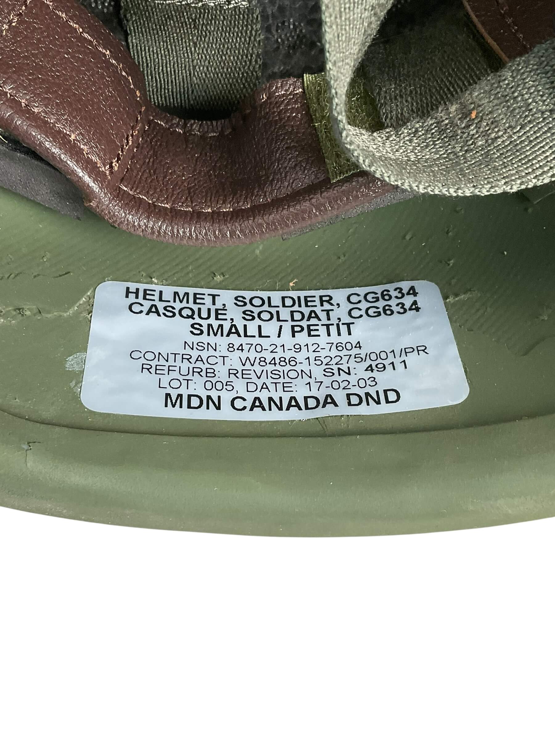 The Canadian Forces CG634 Helmet Size Small is a military-grade protective headgear originally designed for Canada’s armed forces. Distinguished by its green color, the CG634 Helmet exhibits a trademark shell shape for fragmentation protection. It features a size-adjustable liner and a 4-point chin strap for secure fitting. Notably, it meets the CAN/CGSB-65.16-2005 standard.