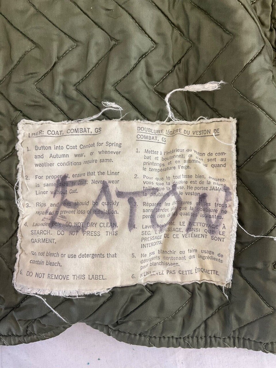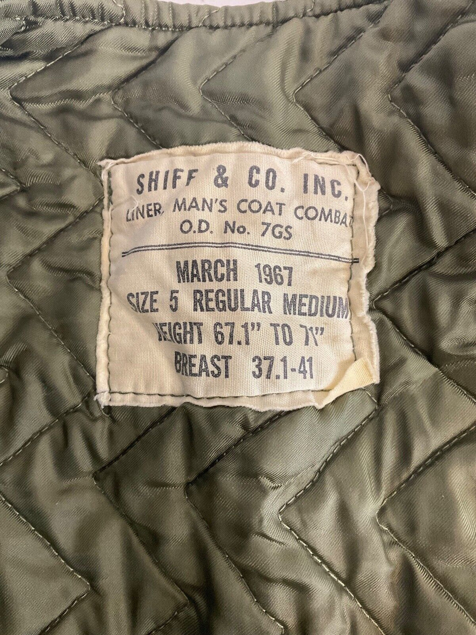 Canadian Forces Combat Coat Liner Size Regular Medium Dated 1967