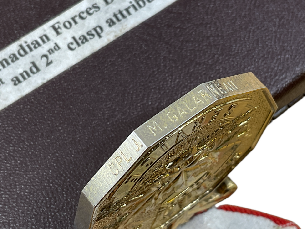 The Canadian Forces Decoration Medal (CD) & 2 Bar awarded to Corporal (Cpl) Galarneau is a prestigious recognition of long-standing dedication and exemplary service in the Canadian Armed Forces. This decoration is granted to members who have completed 12 years of service, with each subsequent bar representing an additional 10 years. Receiving two bars signifies Corporal Galarneau’s remarkable 32 years of unwavering commitment and contributions to the military. The medal showcases a royal crown, maple leaves, and the recipient’s name inscribed on the rim, symbolizing honor and distinction. Cpl Galarneau’s achievement underscores a career marked by steadfast loyalty, professionalism, and significant dedication to Canada’s defense. This decorated service member’s exemplary record highlights their pivotal role in maintaining the high standards and traditions of the Canadian Armed Forces, earning them a highly respected place among their peers and the broader community.