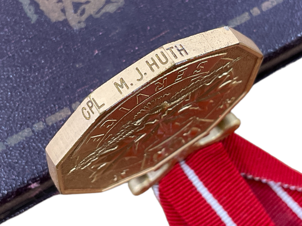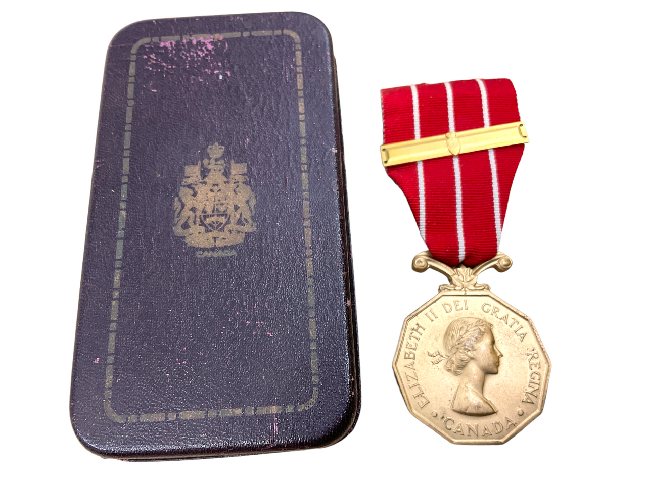 The “Canadian Forces Decoration Medal CD & Bar Cpl Huth” recognizes the dedicated service and commitment of Corporal Huth to the Canadian Armed Forces. The Canadian Forces Decoration (CD) is awarded to members of the Canadian Forces who have completed twelve years of honorable service. The accompanying bar signifies an additional ten years of service, highlighting extended dedication. Corporal Huth’s receipt of both the medal and the bar underscores a long-standing commitment, professional conduct, and loyalty. This decoration is an emblem of honor, reflecting the core values and unwavering dedication Cpl Huth has shown in their military career. The CD & Bar symbolize not only prolonged service but also the high standards and excellence that characterize the Canadian Armed Forces.