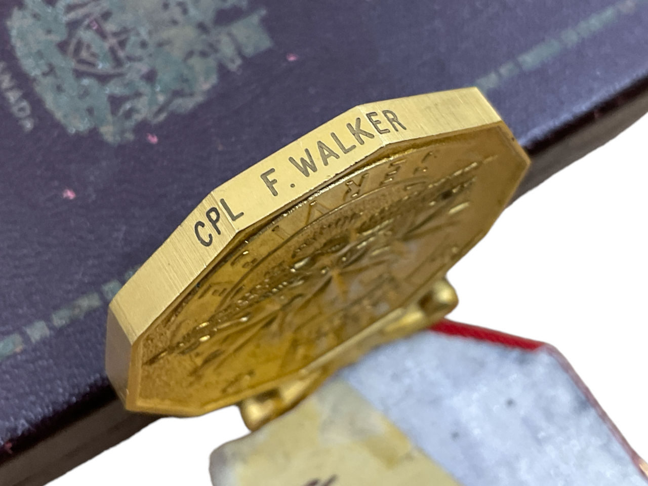 The Canadian Forces Decoration Medal (CD) & Bar awarded to Corporal Walker is a distinguished honor recognizing 12 years of dedicated and exemplary service in the Canadian Armed Forces, with the bar indicating an additional 10 years of service. This medal symbolizes commitment, professional conduct, and devotion to duty within the military. Corporal Walker’s receipt of this decoration highlights a career marked by steadfast reliability and an unwavering pursuit of excellence. The CD & Bar serves not only as a personal accolade but also as a testament to the values upheld by the Canadian military. It is a revered symbol of the sacrifices and contributions made by service members, reflecting their steadfast dedication to the defense and service of Canada. Though it bears Corporal Walker’s name, this decoration embodies the collective spirit of all who serve in the nation’s defense forces.