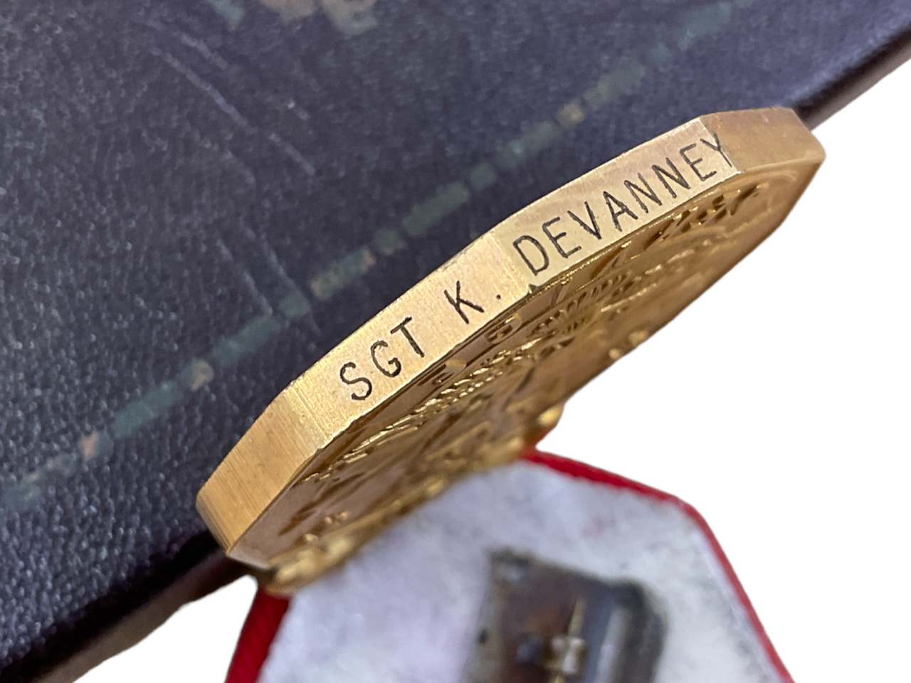 The “Canadian Forces Decoration Medal CD & Bar Sgt Devanney” honors Sergeant Devanney for his dedicated service and exemplary contributions to the Canadian Armed Forces. This prestigious decoration, known as the Canadian Forces Decoration (CD), is awarded to members who have completed a minimum of twelve years of service, showcasing a commitment to duty and the defense of Canada. The addition of a bar indicates further recognition of continued dedication and additional years of service beyond the initial award. The medal itself is a symbol of loyalty, professionalism, and perseverance, reflecting Sgt. Devanney’s unwavering commitment to his country. With its distinctive insignia and ribbon, this decoration stands as a testament to the values upheld by Sergeant Devanney throughout his military career, marking him as a respected and honored member of the Canadian Forces.