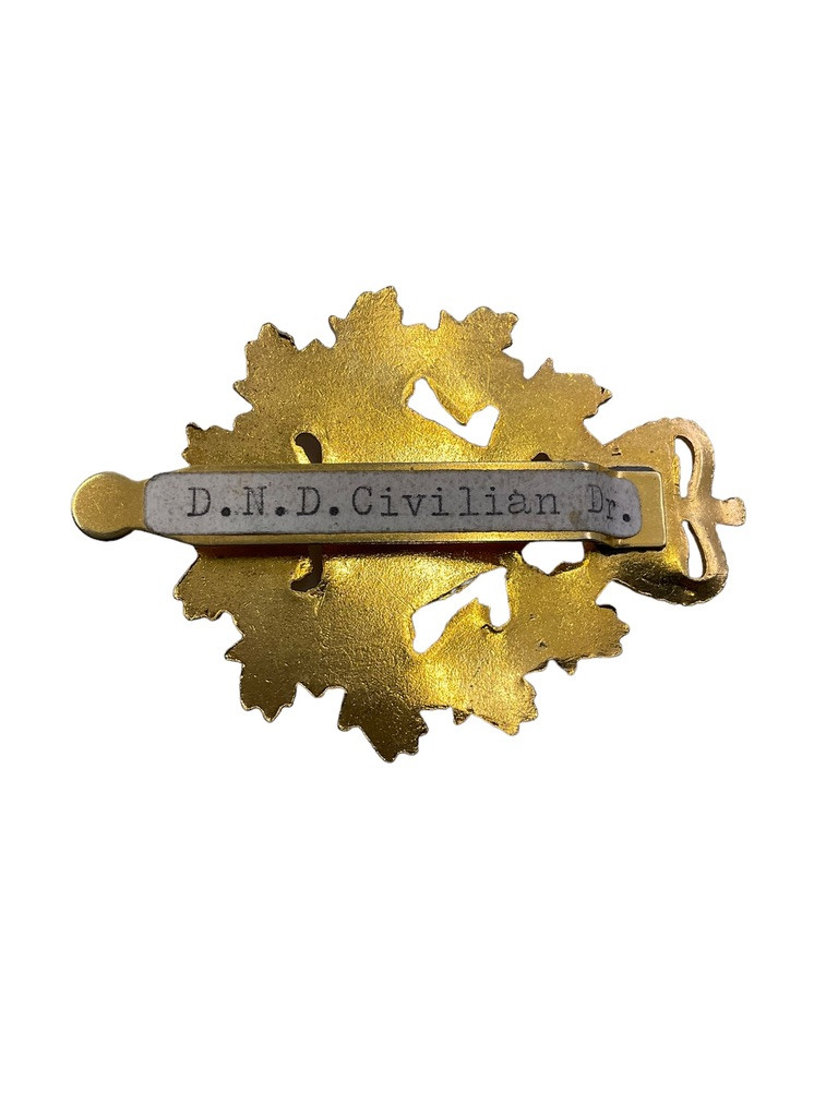 The ‘Canadian Forces DND Civilian Driver Motor Transport Cap Badge’ is a distinguished emblem worn by civilian drivers within the Department of National Defence (DND) in Canada. Symbolizing dedication and service, this cap badge is a mark of honor for those who support the Canadian Forces through their critical role in motor transport. The design typically features iconic Canadian imagery and military motifs, reflecting the badge bearer’s contributions to national defense logistics and transportation operations. Crafted with attention to detail, this cap badge not only represents the professionalism and commitment of its wearer but also serves as a proud identifier within the broader spectrum of Canadian military and civilian service members. Whether worn during routine duties or special occasions, the badge stands as a testament to the essential support provided by civilian drivers in maintaining the operational efficiency of the Canadian Forces.