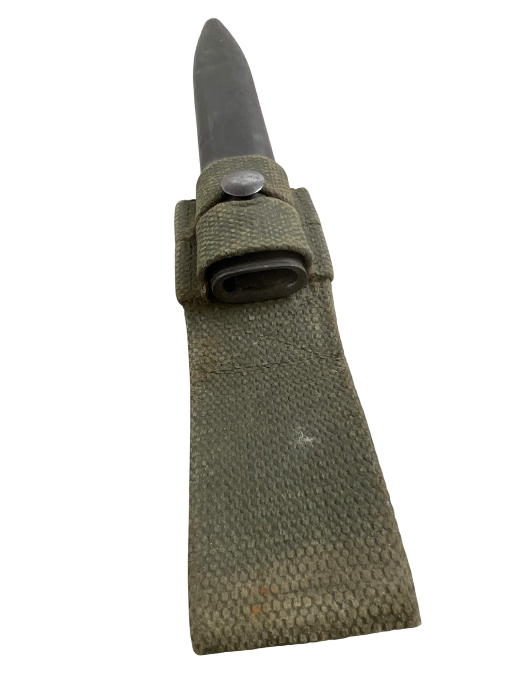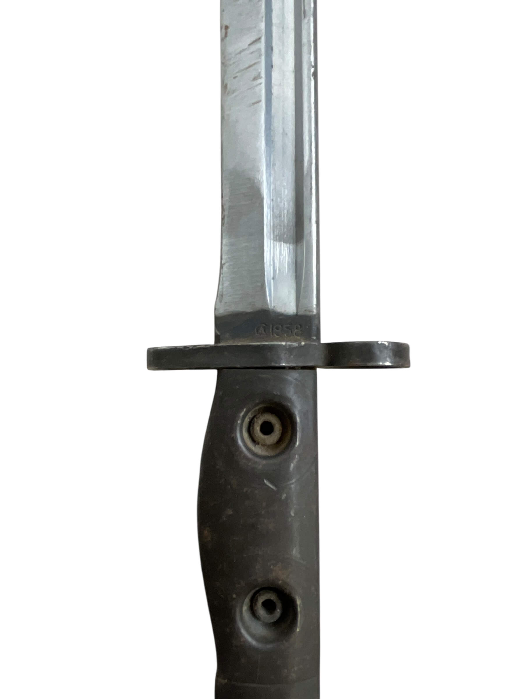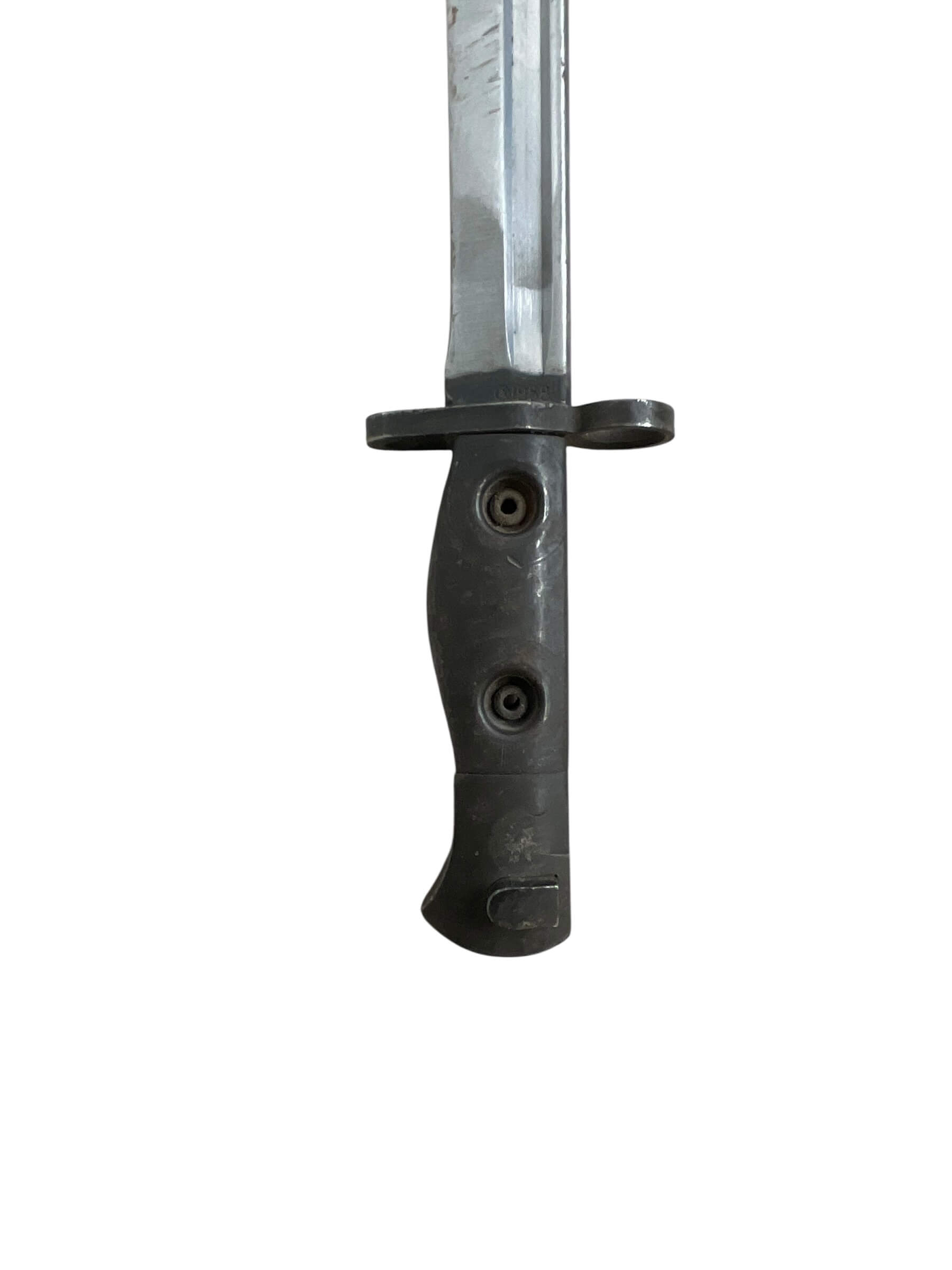 This unique piece is a Canadian Forces FN C1 Bayonet, complete with its original scabbard. Crafted in 1958, this bayonet is a true artifact of history, representing the military equipment used by the Canadian Forces during the late 1950s. The bayonet features a 51 pattern frog – a term used to describe the mechanism used to attach the bayonet to a soldier’s belt or webbing. Its design is robust and practical, reflecting the functionality needed in military hardware. The bayonet and scabbard have been preserved in excellent condition, offering collectors and military enthusiasts an authentic piece of Canadian military history. This item is not only a weapon but also a testament to the craft of mid-20th century military manufacturing.