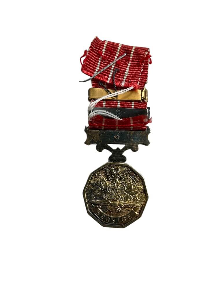 The Canadian Forces George the 6th CD Miniature Medal with 2 Bars is a prestigious item of military memorabilia, specifically designed to honor the service and dedication of Canadian military personnel during the reign of King George VI. This miniature medal is a smaller version of the original full-sized medal, offering a compact and convenient display piece for collectors or veterans. It features two bars, indicating additional terms of service or special recognition. The medal is adorned with the effigy of George VI, the last King of Canada, symbolizing the monarch’s personal appreciation for the recipient’s military service. This medal is not only a significant piece of Canadian history, but also a powerful symbol of bravery, service, and dedication to one’s country.
