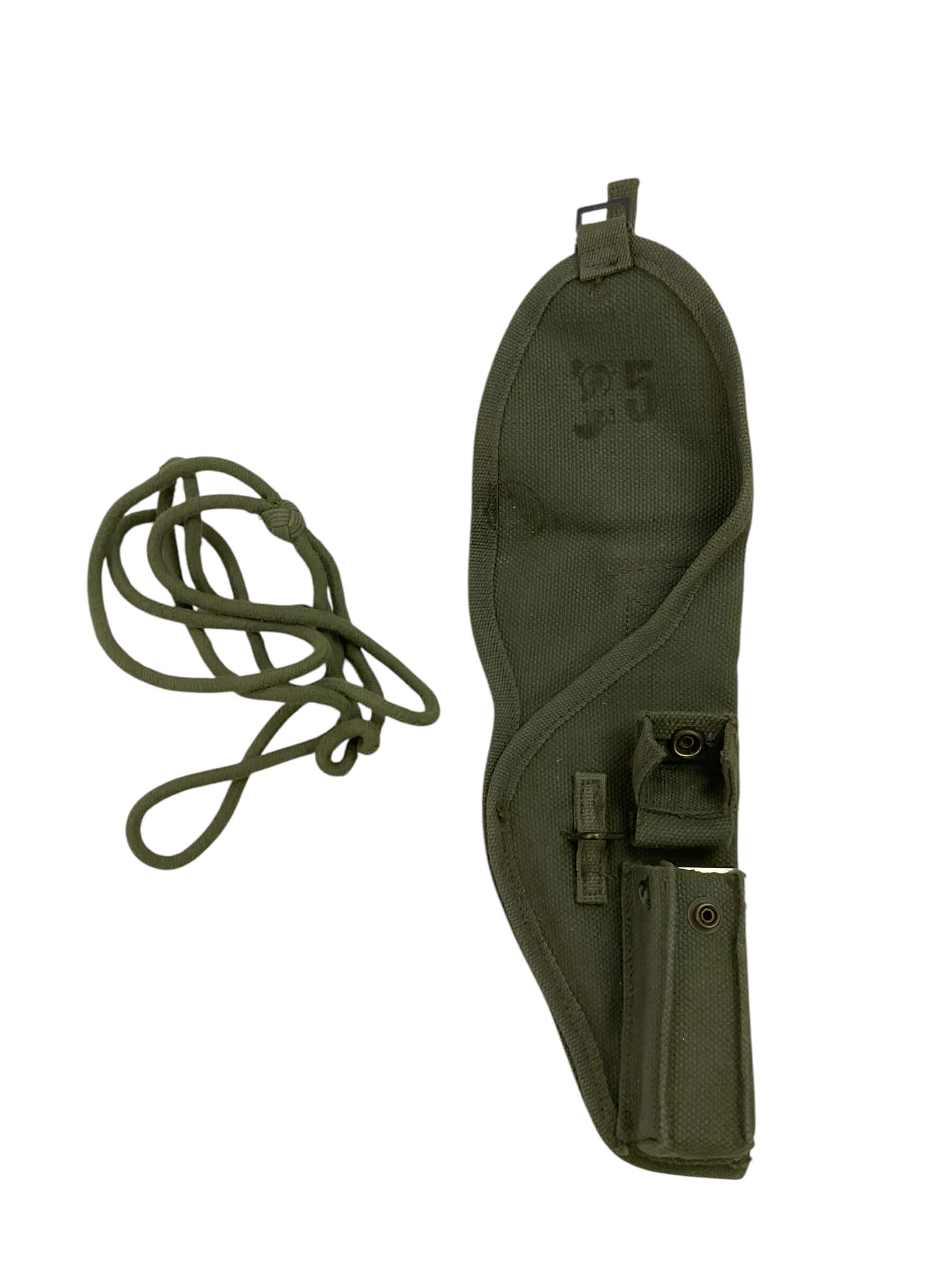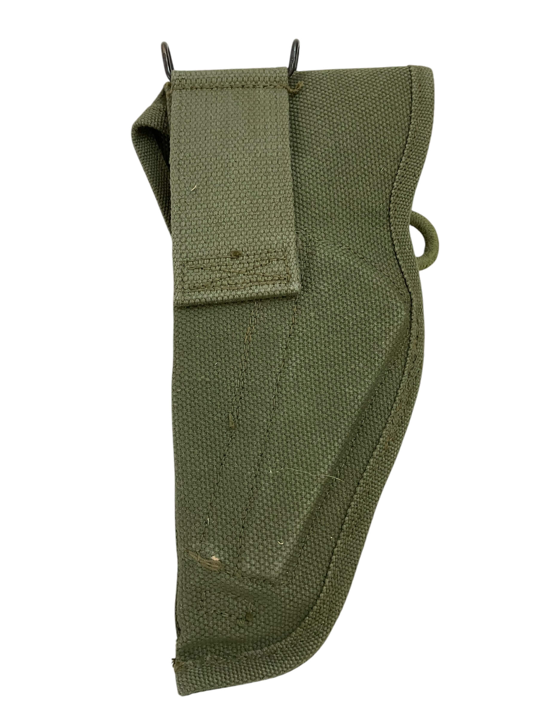 This item is a pristine example of a Canadian Forces Hi-Power 51 Pattern Holster complete with a lanyard. Crafted with utmost precision and attention to detail, the holster is designed to securely hold and protect your firearm. It is made from high-quality, durable material that ensures its longevity and resilience. The holster features a classic military design, reflecting the rich history and tradition of the Canadian Forces. The included lanyard allows for easy and convenient handling of the holster, adding to its practicality. The mint condition of the holster indicates that it has been exceptionally preserved, with essentially no wear or aging evident. This makes it a highly desirable piece for collectors and military enthusiasts. Its robust construction and excellent condition promise value and reliability for both collectors and those in need of a functional holster.