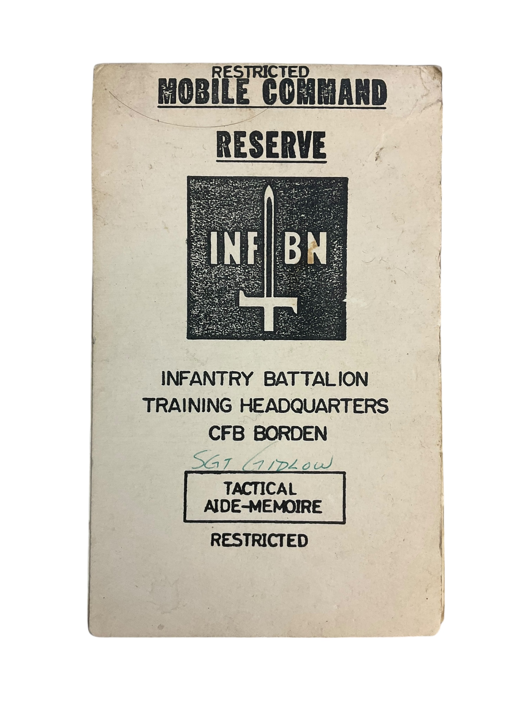 Canadian Forces INF BN CFB Borden Tactical Aide Memoire Used Softcover Reference Book