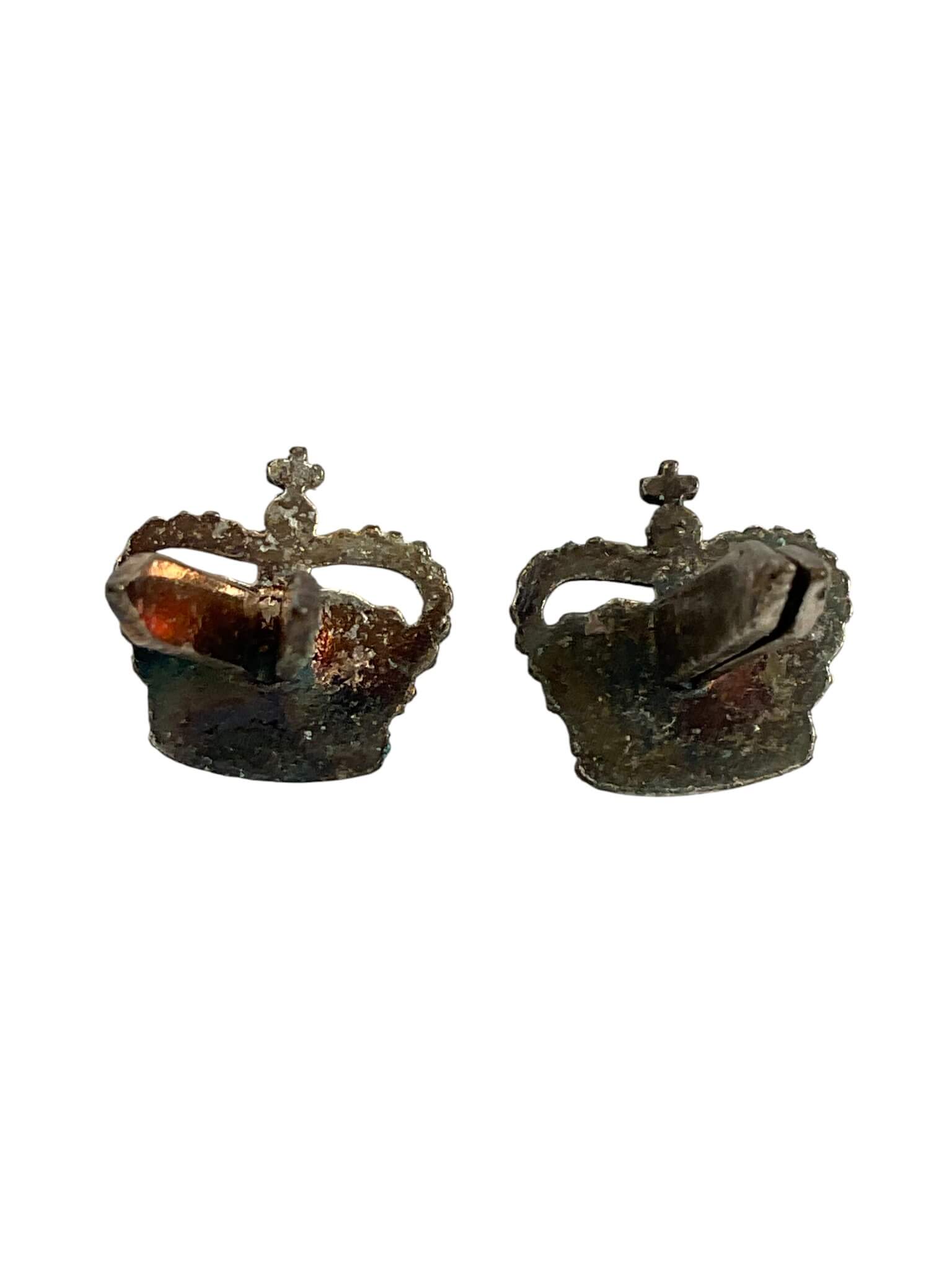 The Canadian Forces Instructors Crowns Insignia Pair consists of two matching rank insignia typically worn by qualified instructors within the Canadian Armed Forces. These metal or cloth insignia, shaped in the form of a royal crown, signify the status and authority granted to personnel entrusted with training roles. Historically, the crown has been used in various Commonwealth military traditions to denote a range of ranks and appointments, and in this context, it specifically identifies those serving as instructors. The insignia are designed for attachment to the uniform, commonly on the epaulettes or sleeves, depending on the branch and regulation. The pair offered here represents the standard pattern used during relevant periods of Canadian military history. Collectors and researchers recognize these insignia as important artifacts that illustrate the structure and recognition systems within the Canadian Forces. Each piece reflects official issue standards as dictated by the Canadian military’s dress codes.