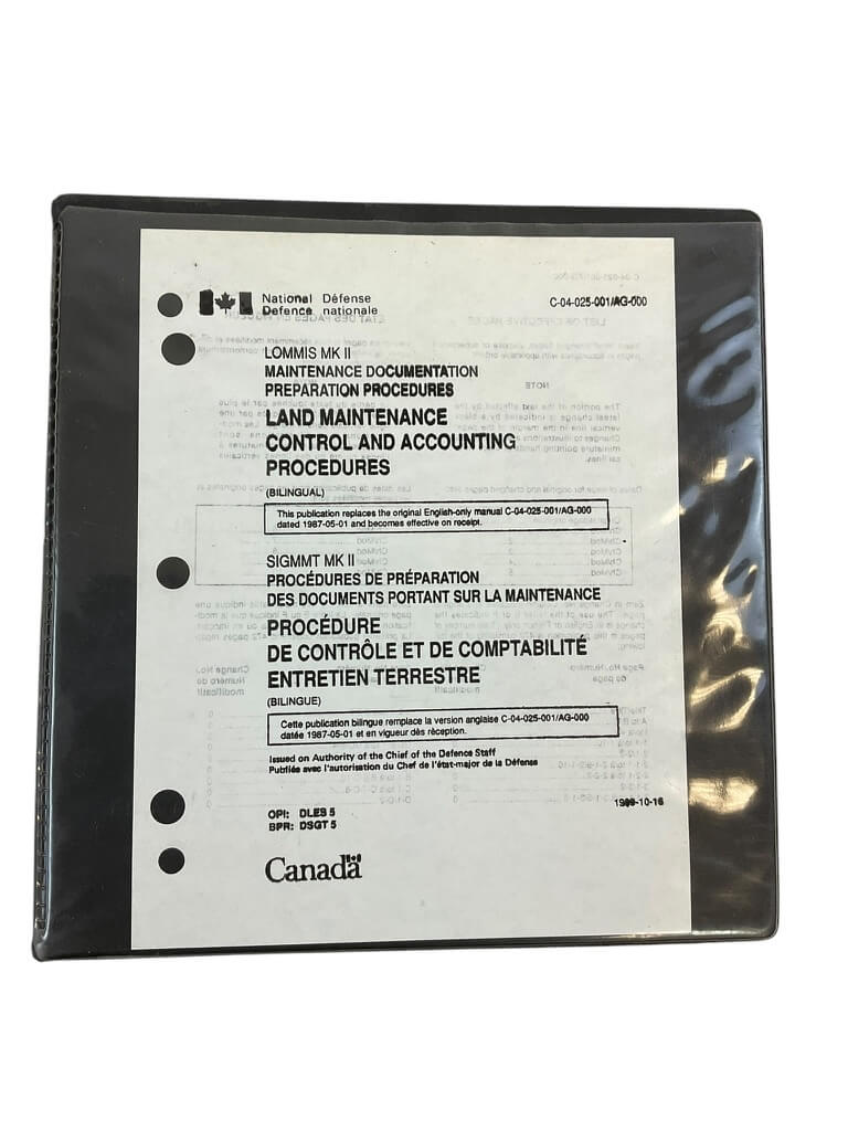 The “Canadian Forces Land Maintenance Control and Accounting Manual Reference Book” is an essential resource for individuals involved in the maintenance and logistical operations of the Canadian military. This comprehensive hardcover manual spans 500 pages and offers detailed guidelines and protocols critical for the effective control and accounting of land-based military equipment. Designed for functionality and precision, it includes extensive information on maintenance schedules, repair procedures, inventory management, and financial accountability. Whether you’re a military personnel, a defense contractor, or a researcher, this reference book serves as an invaluable tool for ensuring that all land maintenance activities are meticulously documented and managed. Its structured format and authoritative content make it a must-have for anyone committed to upholding the operational standards and efficiency of the Canadian Forces.