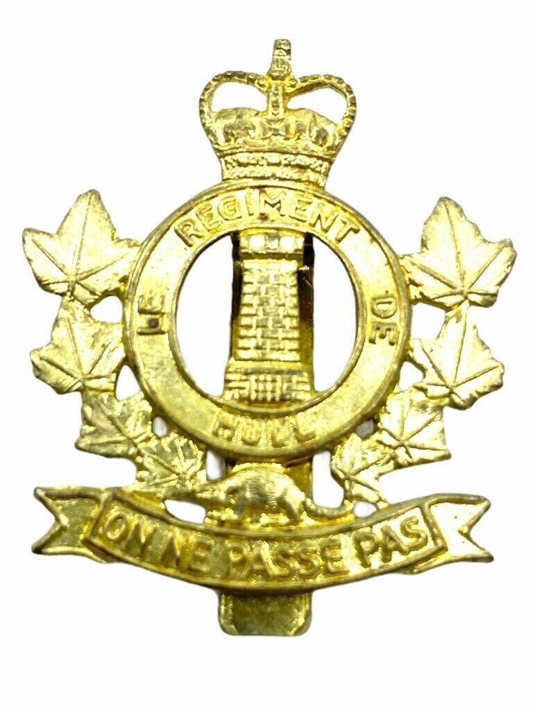 The Canadian Forces Le Regiment De Hull Cap Badge is a distinguished emblem representing the pride and heritage of Le Régiment de Hull, a primary reserve infantry regiment of the Canadian Army. Based in Gatineau, Quebec, this regiment has a storied history dating back to its establishment in 1914. The cap badge, an essential part of the military dress uniform, features intricate detailing symbolizing the regiment’s steadfast service and commitment to both community and country. It often includes elements such as the regiment’s insignia, motto, and possibly regional symbols that reflect its Quebecois roots. Wearing this badge honors the tradition and valor of those who have served in Le Régiment de Hull, showcasing the strong esprit de corps and enduring legacy of Canadian military excellence. Whether displayed in a collection or worn with pride, the cap badge is a powerful symbol of dedication and honor.
