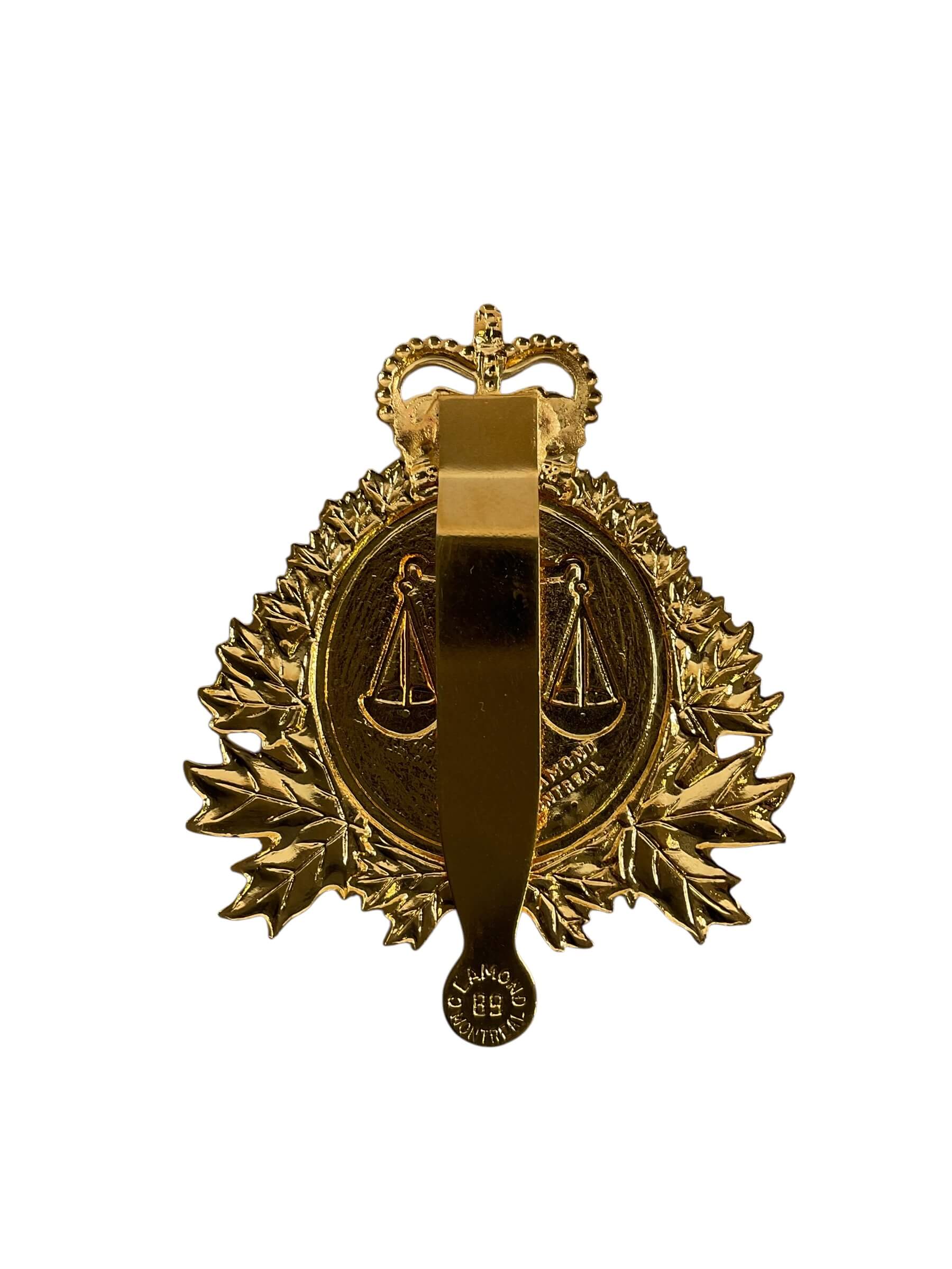 The Canadian Forces Legal Branch Cap Badge is a distinct emblem symbolizing the legal authority within the Canadian Armed Forces. This cap badge, often made from durable metals like brass or silver, features the Canadian Forces emblem, which includes a majestic crowned lion standing on the royal crown, surrounded by laurel leaves. The emblem is intricately detailed, showcasing the meticulous craftsmanship dedicated to its creation. This cap badge is typically worn by members of the Legal Branch, the professionals who provide legal advice, support and training to the Canadian Forces at all levels of command. The badge is not only a symbol of their legal authority, but also represents their dedication and commitment to uphold justice within the military framework. Collectors and military enthusiasts consider this cap badge a significant piece of Canadian military memorabilia.