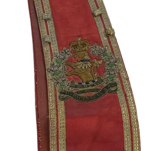 Canadian Forces Lorne Scots Baldric Sash The ‘Canadian Forces Lorne Scots Baldric Sash’ is a distinguished ceremonial accessory worn by members of the Lorne Scots Regiment, a historic infantry regiment within the Primary Reserve of the Canadian Army. This elegant sash, often crafted from high-quality materials, features the regiment’s distinctive colors and emblem, symbolizing the rich heritage and esteemed traditions of the Lorne Scots. Traditionally draped over the shoulder and across the chest, the baldric sash serves not only as a mark of honor and pride but also as a functional item, historically used to carry swords and other tools. Its intricate design and careful craftsmanship reflect the regiment’s storied past and enduring commitment to excellence. Whether worn during official ceremonies, parades, or special events, the Canadian Forces Lorne Scots Baldric Sash stands as a powerful emblem of bravery, unity, and the enduring spirit of the Canadian military.