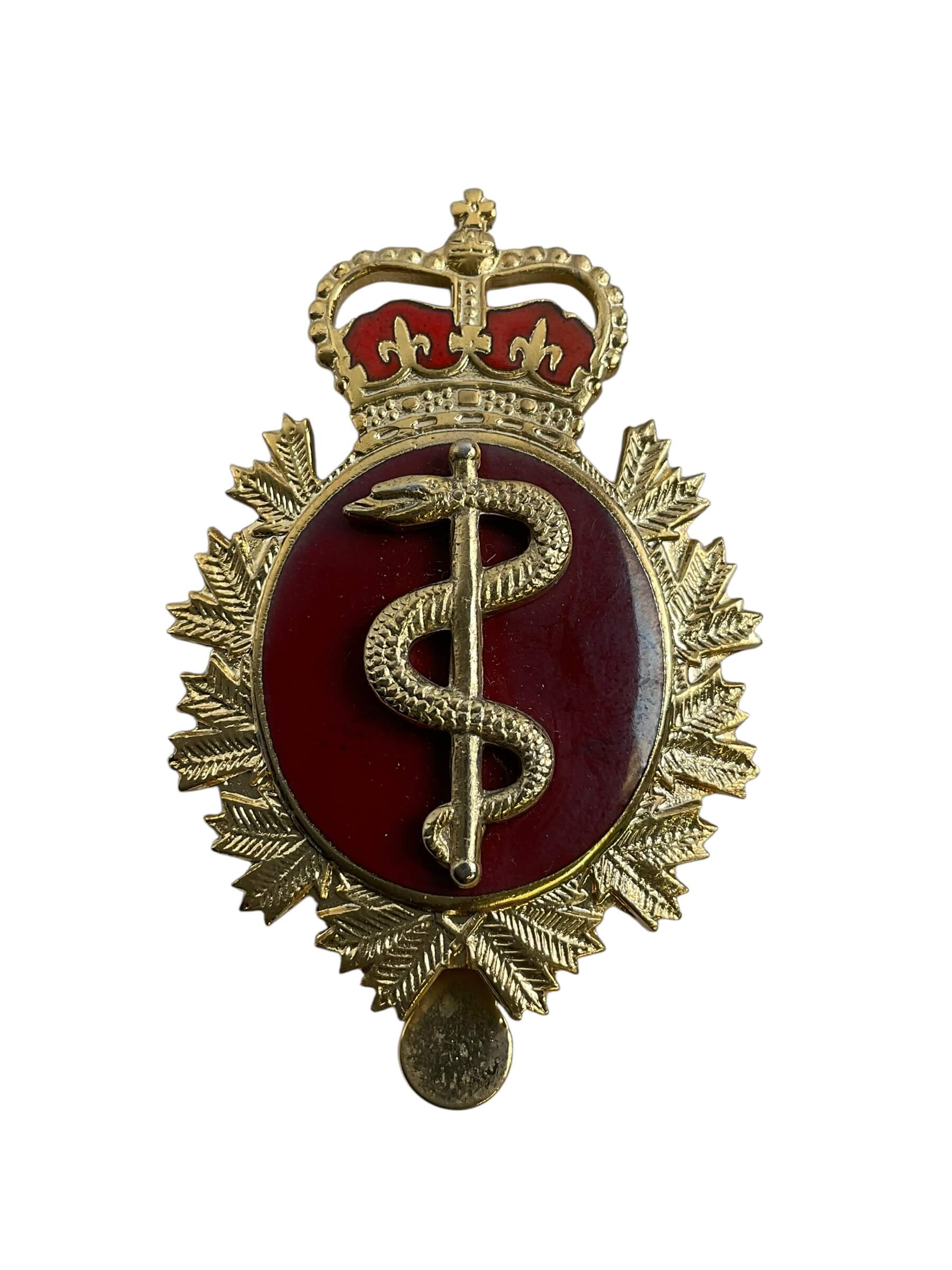 The ‘Canadian Forces Medical Enameled Cap Badge’ is a highly valued military insignia that is used to identify the members of the Canadian Forces Medical Services. This cap badge is meticulously crafted with high-quality materials, ensuring durability and longevity. The badge features the distinct emblem of the Medical Services, exuding a sense of pride and honor. It is enameled, offering a sleek and polished appearance that adds to its overall appeal. The badge is designed to be easily pinned onto the cap, providing a secure fit. The ‘Canadian Forces Medical Enameled Cap Badge’ is not just a piece of military paraphernalia, but a symbol of duty, dedication, and service to the nation. It is a cherished possession for anyone associated with the Canadian Forces Medical Services, making it a perfect gift for veterans, active-duty members, or military enthusiasts.