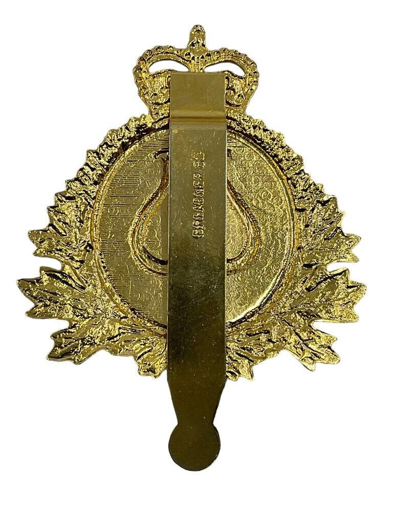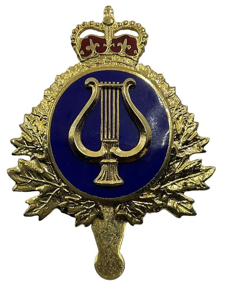 The “Canadian Forces Musician Bandsman Cap Badge” is a distinctive insignia worn by members of the Canadian military bands, symbolizing their esteemed role within the armed forces. This badge features intricate designs that reflect the pride and heritage of Canada’s military musical tradition. Typically crafted from high-quality metal, the badge is adorned with iconic Canadian symbols such as the maple leaf, signifying national pride, and musical elements like the lyre or musical notes, denoting the wearer’s commitment to military music. The badge is often polished to a brilliant shine, making it a standout piece on the uniform cap. It not only serves as a mark of distinction for the musicians who play ceremonial roles but also honors their contribution to morale and military tradition through the universal language of music.
