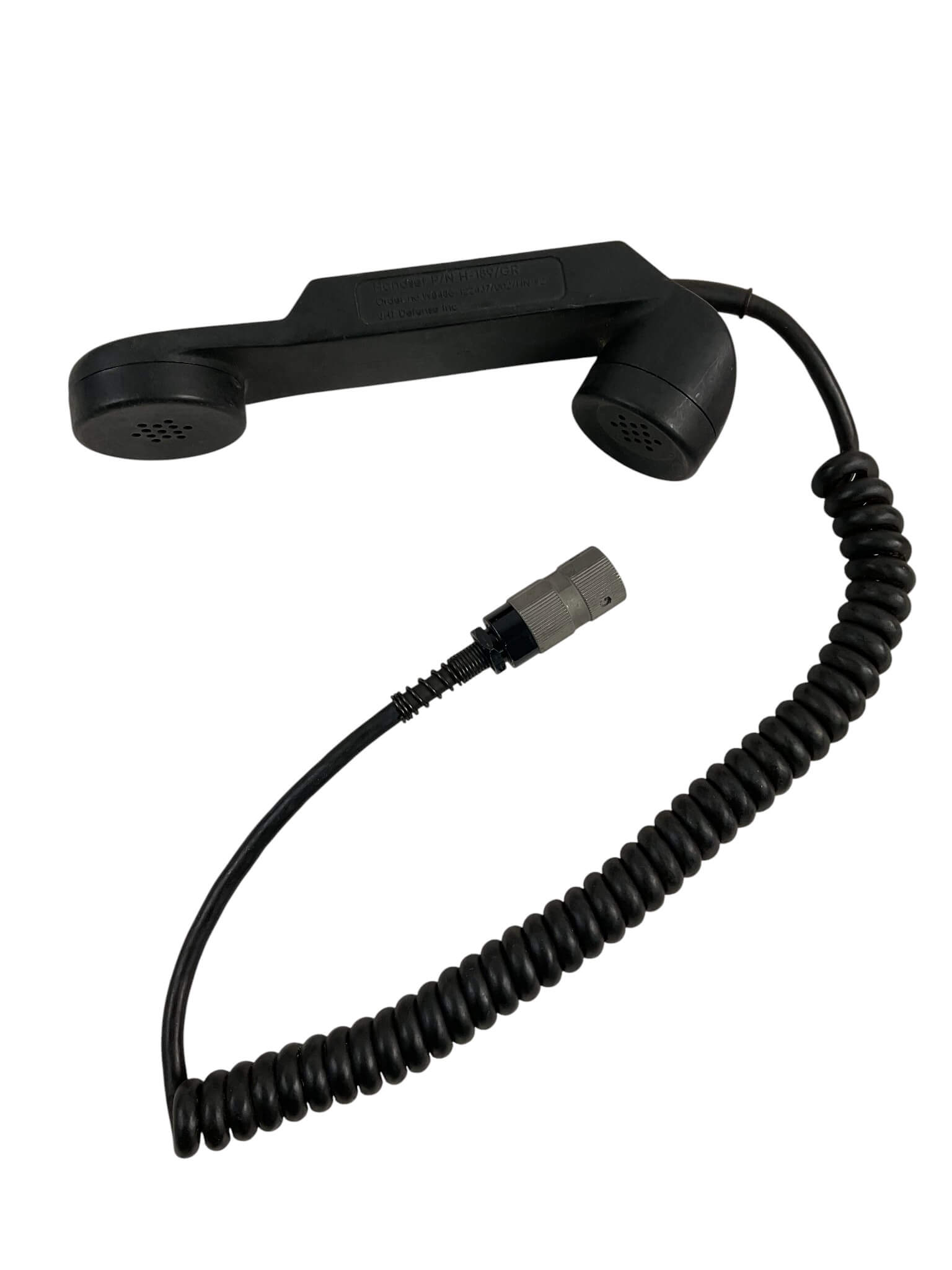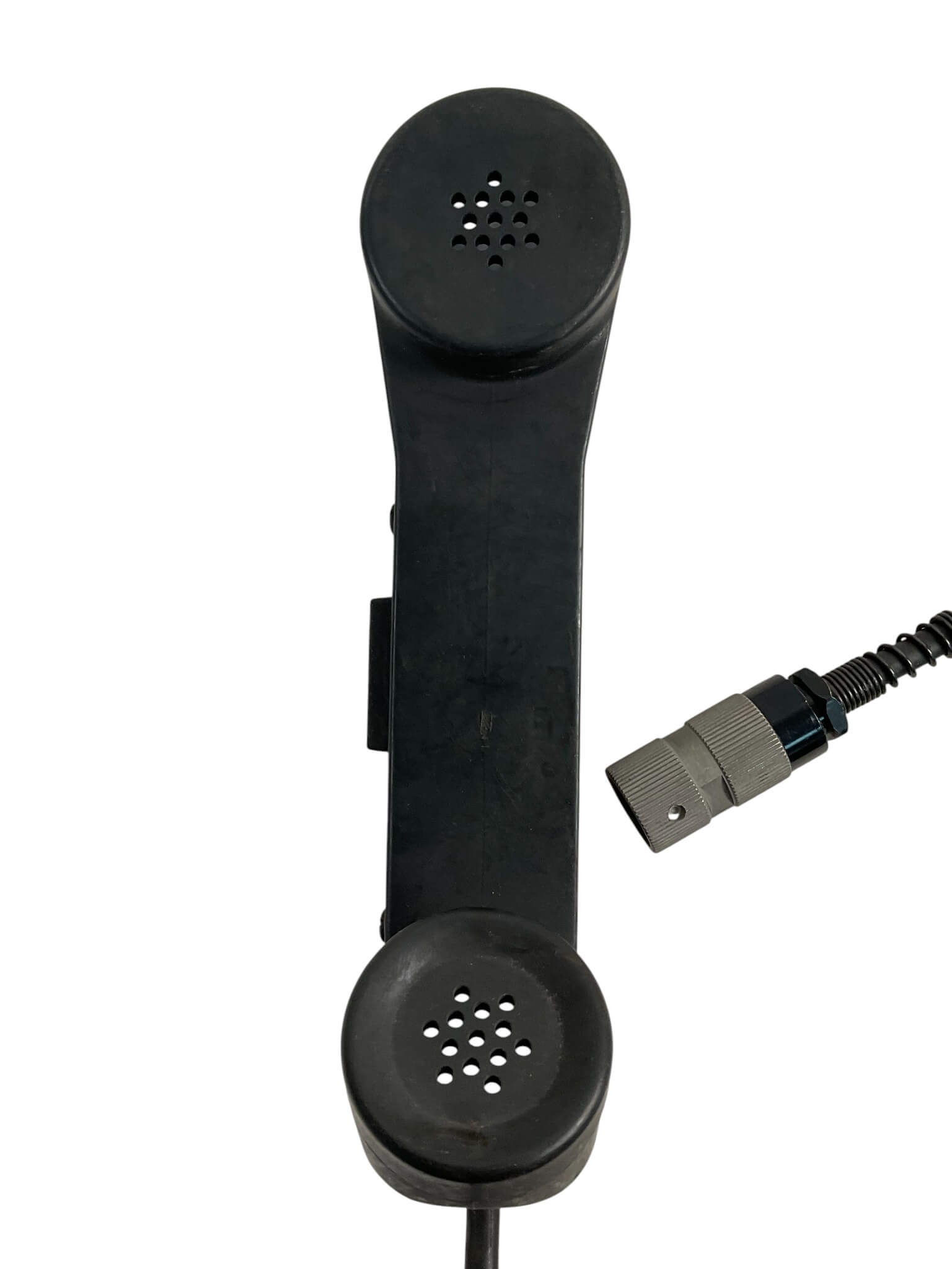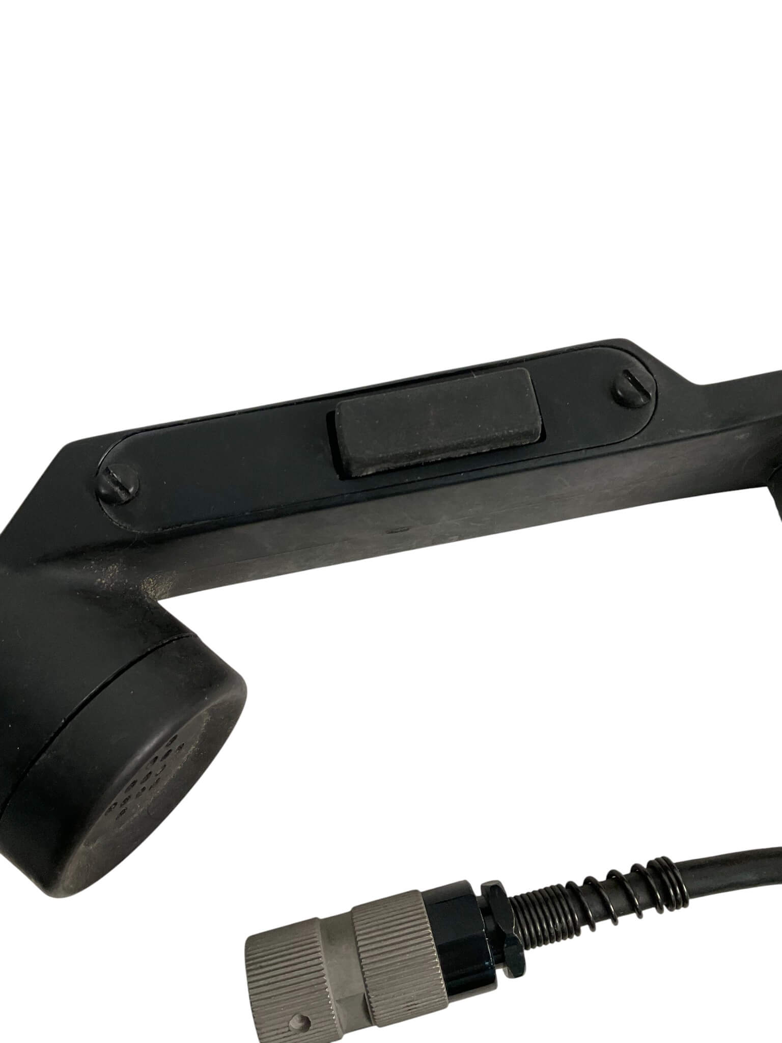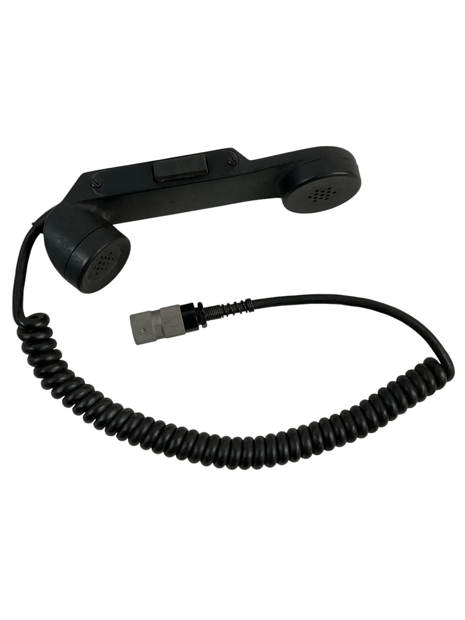 The Canadian Forces PRC-25 Radio Handset is an original accessory designed for use with the PRC-25 manpack radio system, widely employed by military units from the 1960s through the 1980s. This handset features a durable, olive-drab plastic casing, a coiled communication cord, and a push-to-talk button, allowing for clear audio transmission and reliable field operation