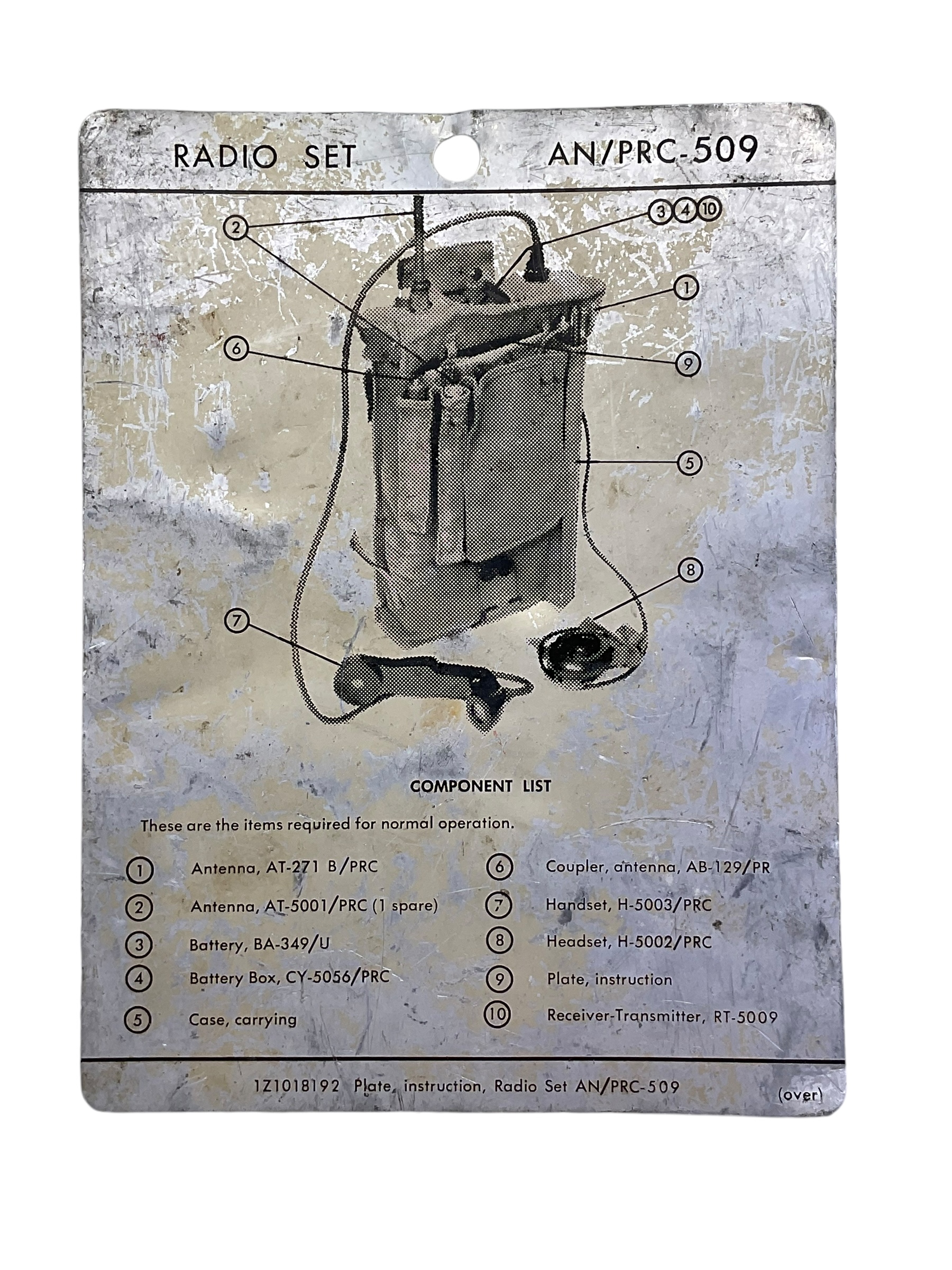 Canadian Forces Radio Set AN/PRC-509 Aluminum Description Plate