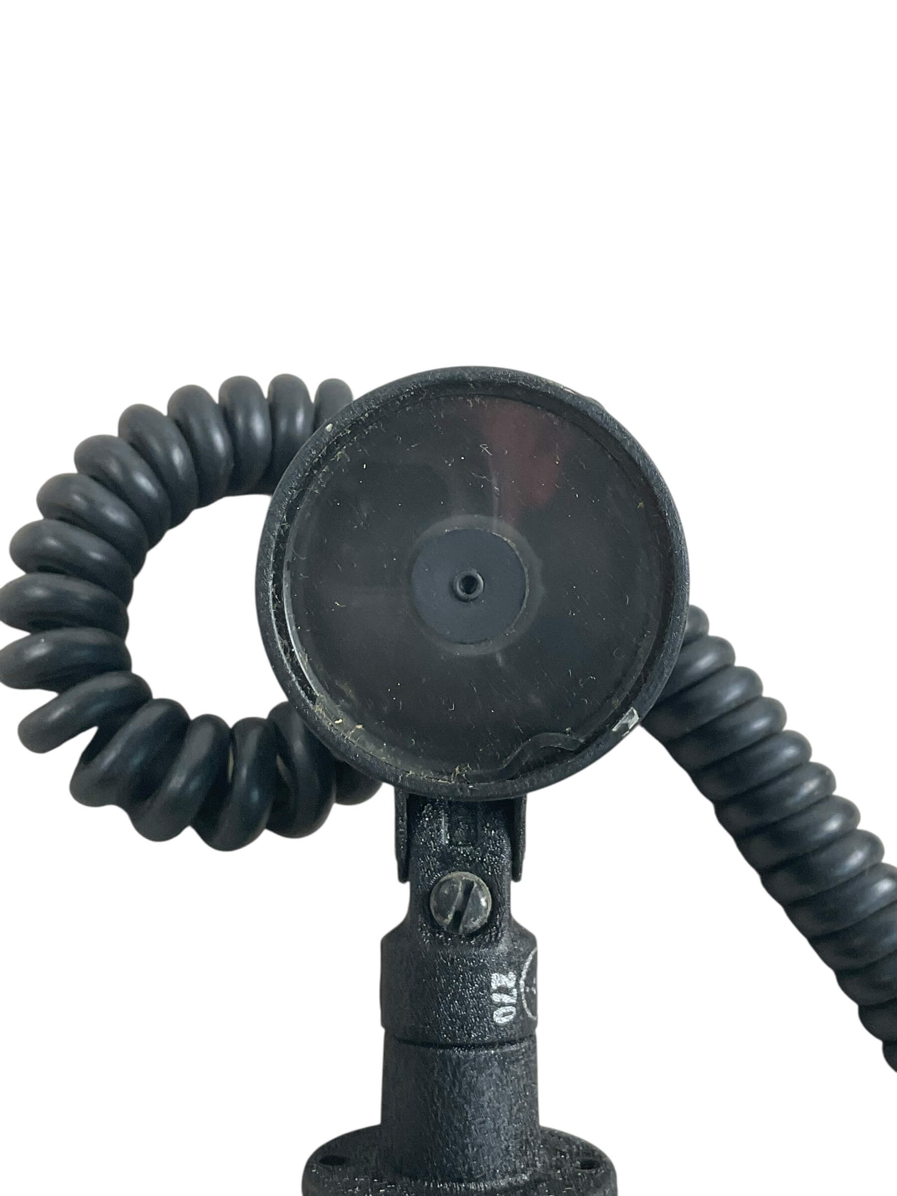 The Canadian Forces RCAF Aircraft Cockpit Light is an authentic component used in Royal Canadian Air Force aircraft. Designed for durability and reliability, this cockpit light provided essential illumination for instrument panels during flight operations, enabling pilots to read instruments and controls in low-light or night conditions. The unit typically features a robust metal casing, protective glass or plastic lens, and adjustable mounting fixtures to ensure secure placement within the cockpit environment. Standard wiring and connectors allowed for integration with aircraft electrical systems, conforming to military specifications for performance and safety. This cockpit light reflects mid- to late-20th-century aviation technology and was commonly seen on various RCAF aircraft types. It serves as a tangible example of standard-issue equipment used by Canadian aircrew, offering historical insight into military aviation practices. This item is valued by collectors and enthusiasts interested in Cold War-era and postwar Canadian military artifacts.