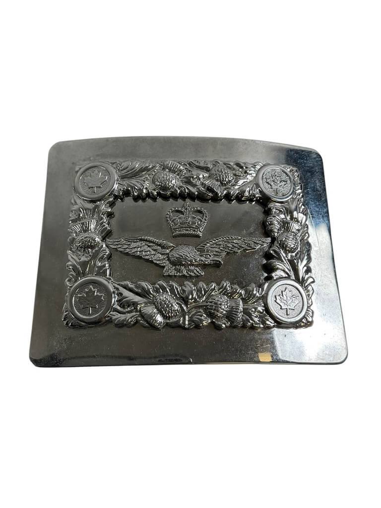 The Canadian Forces RCAF Bandsman Belt Buckle is a significant piece of Canadian military memorabilia. It represents the Royal Canadian Air Force (RCAF) and its illustrious history. This belt buckle is a mark of distinction for members of the RCAF Band, an ensemble of talented musicians who perform at official Canadian Forces functions and public events nationwide. Designed with the utmost attention to detail, the buckle features the iconic RCAF crest, which is rich in symbolism and tradition. This item is not only a functional piece of uniform attire, but also a proud emblem of service and dedication. Made with high-quality materials, it is built to last, just like the legacy of the RCAF. Whether it’s for a serving member, a veteran, a collector of military items, or simply someone who admires the RCAF, this belt buckle makes an excellent gift.