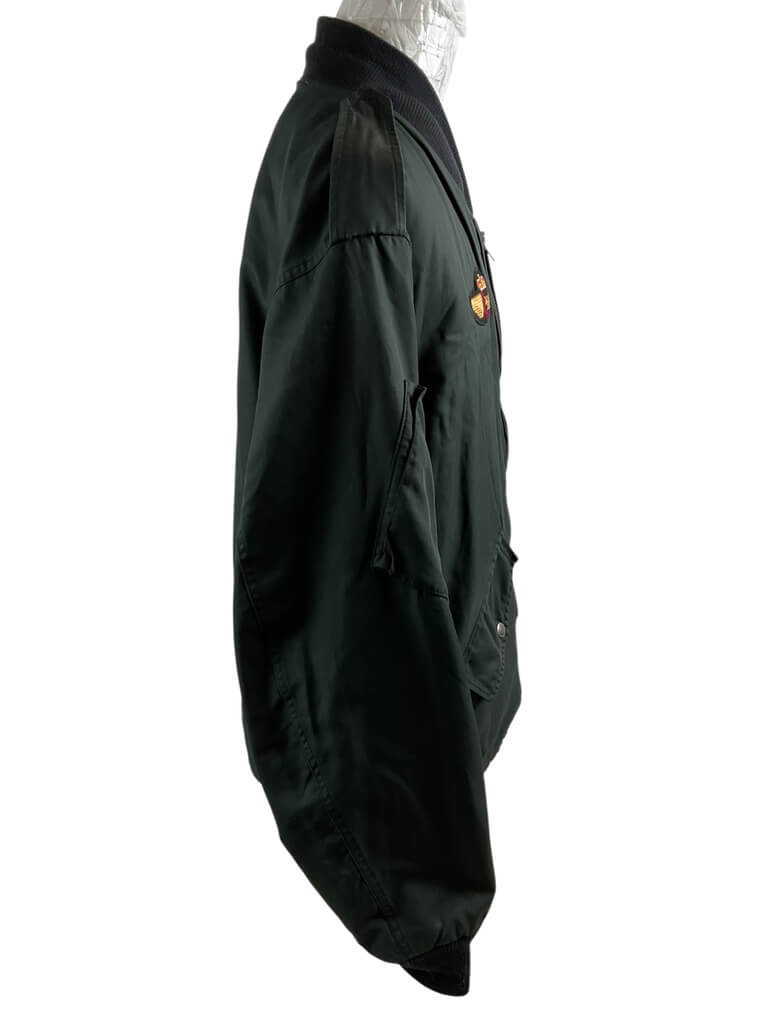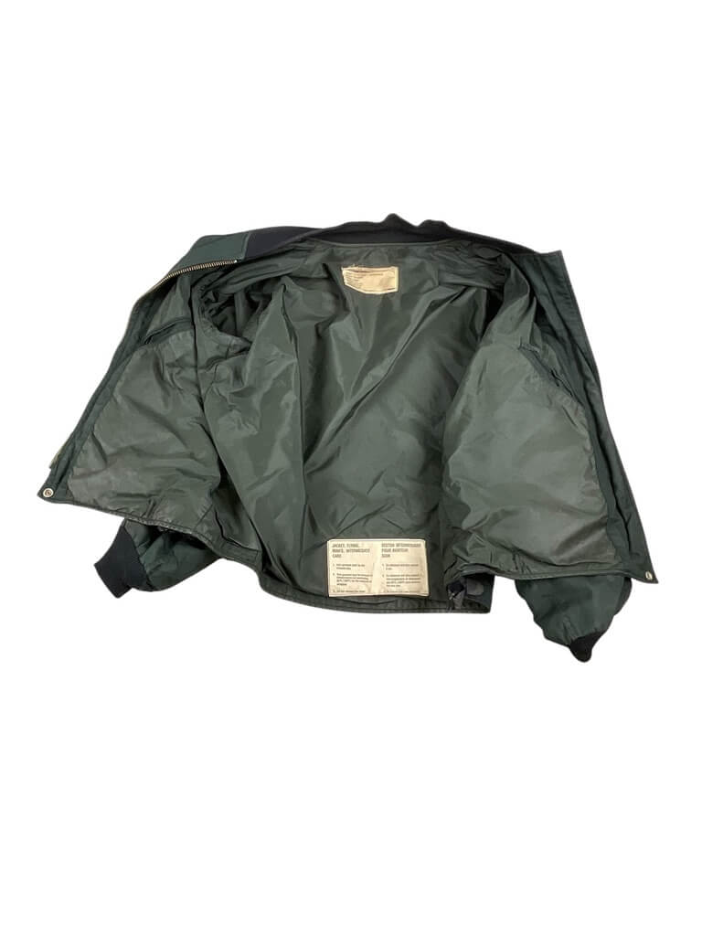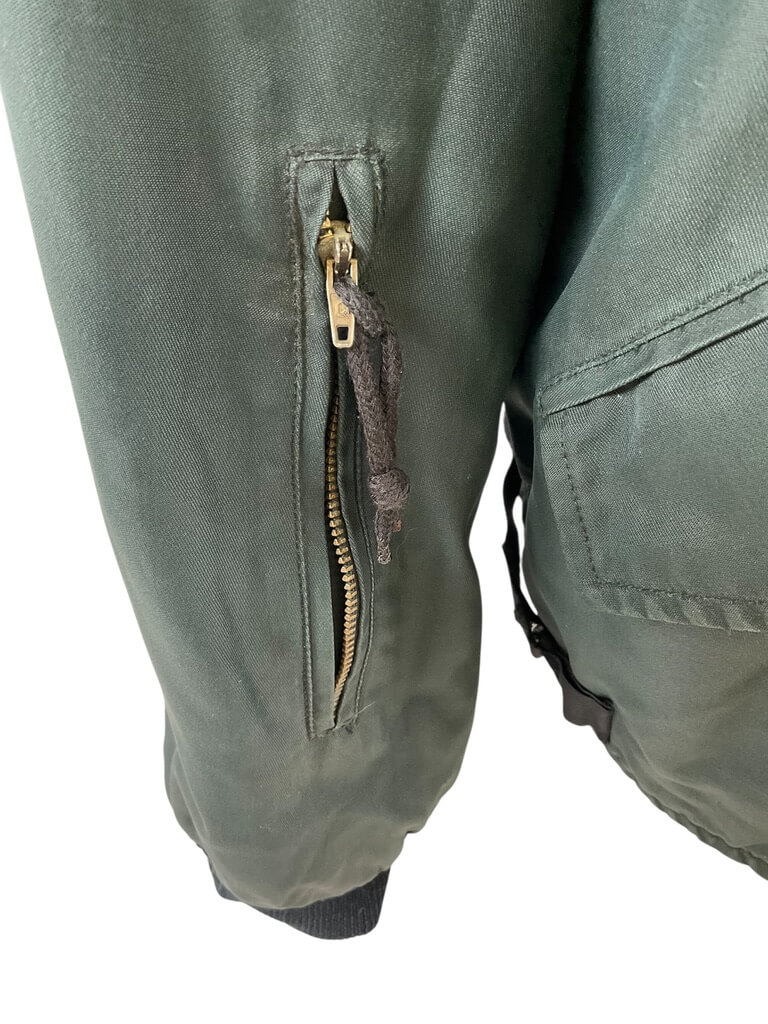 This Canadian Forces RCAF Green Flight Jacket is a classic military-grade garment, sized 7444, ideal for those who value durability and style. It is made with high-quality materials, designed to withstand harsh weather conditions and everyday wear. The jacket’s green color is reminiscent of the Royal Canadian Air Force’s traditional uniform, while its array of pockets offers practical storage options. The sturdy zip front and high collar provide excellent protection against wind and cold. This jacket is not merely a piece of clothing but a tribute to the brave men and women of the Canadian Forces. Its sturdy construction and timeless design make it a long-lasting addition to any wardrobe. Whether you’re an aviation enthusiast, a military history buff, or simply appreciate quality outerwear, this RCAF Green Flight Jacket embodies a blend of functional design and historical significance.