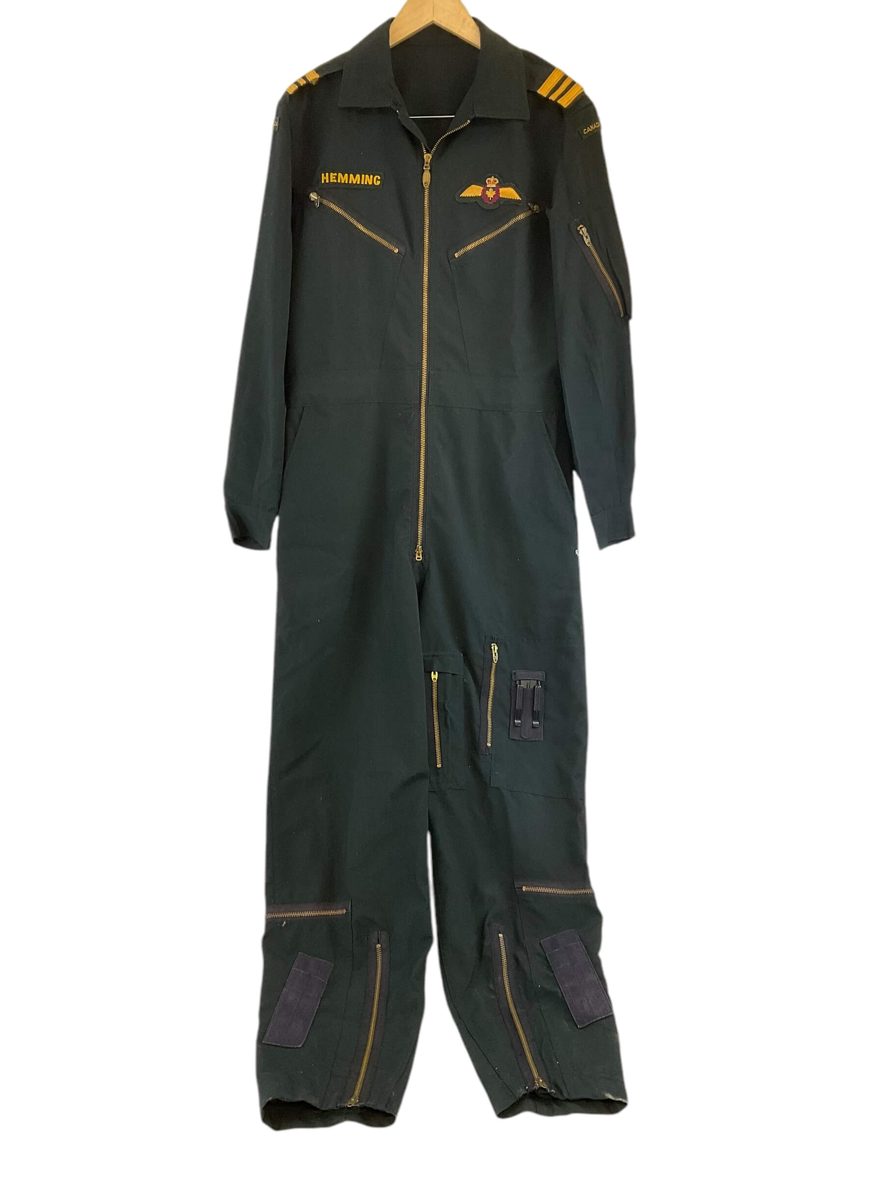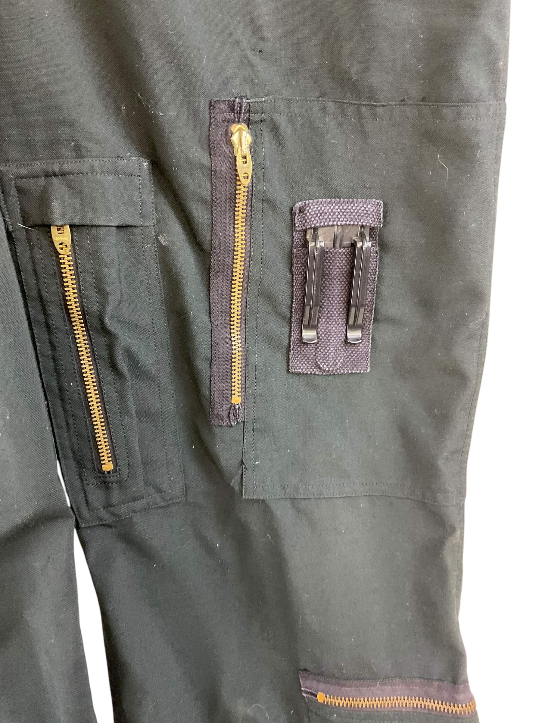 This is a unique piece of military history, a Canadian Forces RCAF (Royal Canadian Air Force) Green Flight Suit from 1972. Size 7241, this suit was typically worn by pilots during their flight missions. The suit is styled in a deep green color, reflecting the standard issue for the Canadian Forces during that era. It is dated 1972, making it a genuine artifact from that period. This flight suit boasts original design features, including multiple pockets for practical use, and a front zipper for easy wear. Crafted with precision and durability, this flight suit offers an insight into the rigorous conditions faced by Air Force pilots. It is a rare find and a must-have for military history enthusiasts, collectors, or anyone passionate about aviation history.