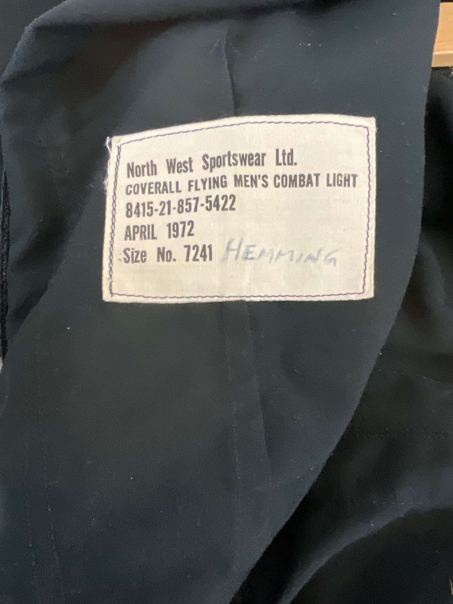 Canadian Forces RCAF Green Flight Suit Pilot 1972 Dated Size 7241