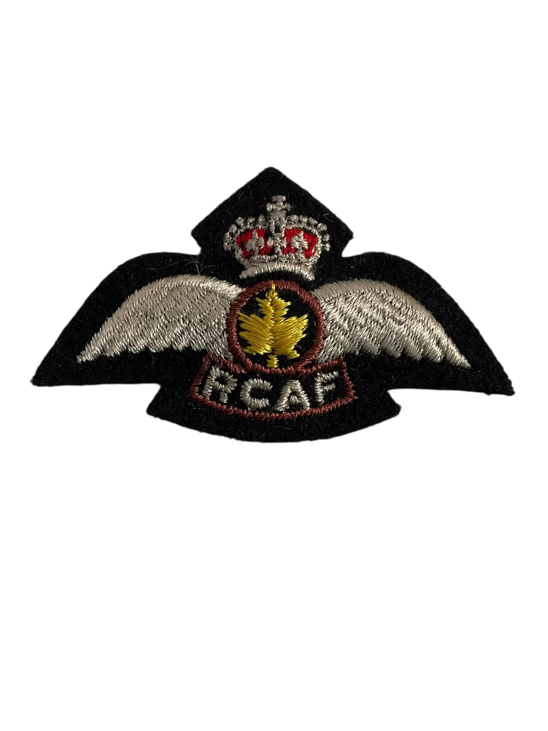 The Canadian Forces RCAF NATO Trainees Padded Pilots Wings represent insignia awarded to individuals undergoing pilot training under the Royal Canadian Air Force’s NATO program. The badge features the distinctive stylized wing design with the central royal crown and maple leaf emblem, symbolizing Canadian military aviation. Constructed with padded embroidery, the insignia provides a three-dimensional profile, typical of mid to late 20th-century Canadian Forces dress uniforms. These wings were worn on the service dress of student pilots during various NATO training courses, distinguishing trainees from fully qualified pilots. The padded structure often includes a wool or felt base, with silver or white thread used for the wing details and coloured threads for the central elements. This item is relevant for collectors of Canadian and NATO military memorabilia, as it reflects both the history of joint pilot training programs and the development of RCAF insignia. The example offered is a standard-issue trainees’ version.
