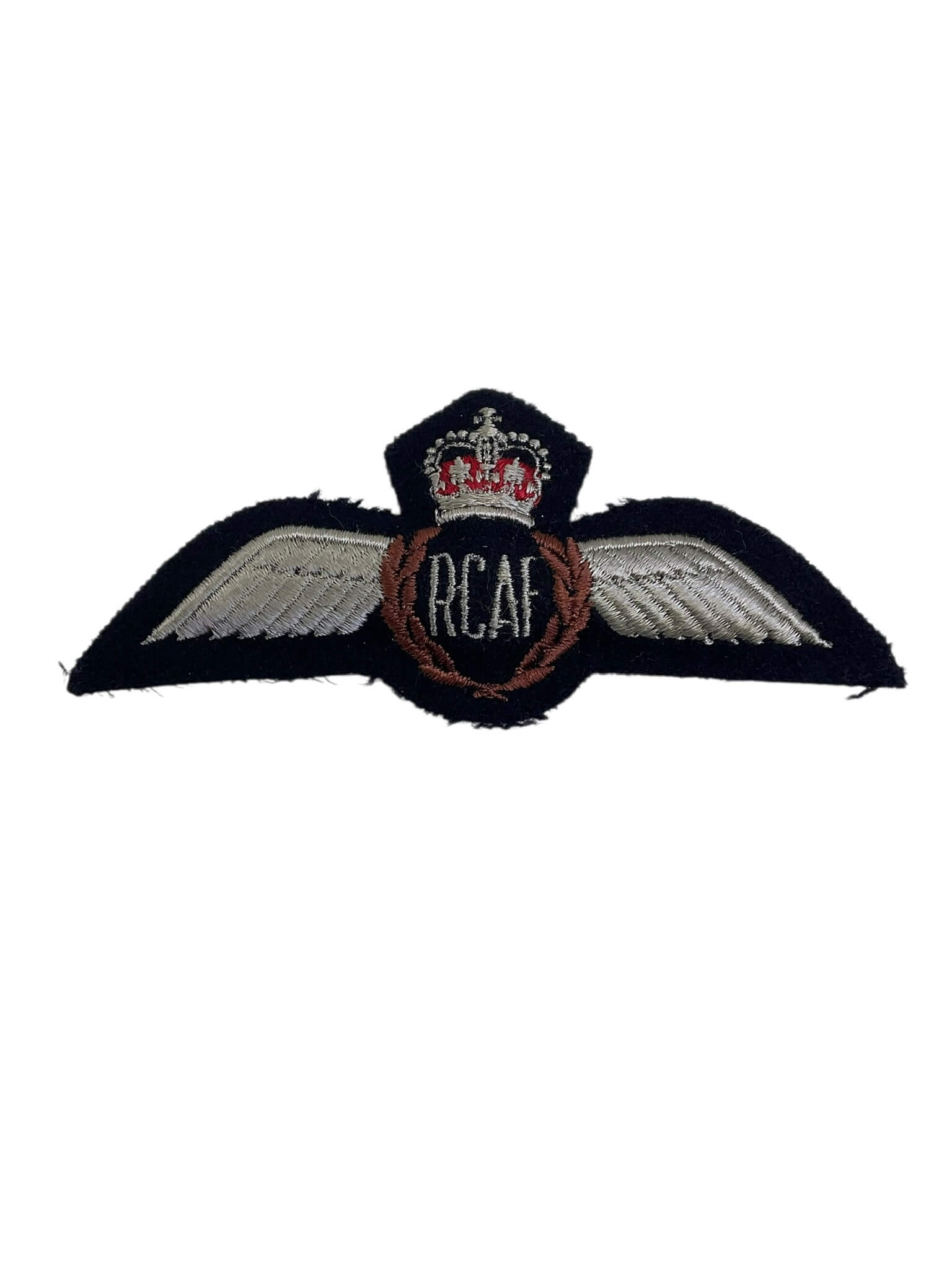 The Canadian Forces RCAF Padded Pilots Wing is an embroidered insignia awarded to qualified pilots of the Royal Canadian Air Force. This version features the distinctive outstretched wings flanking a central crown and a “CANADA” scroll, indicating both aviator status and national service. The wing is crafted with raised, padded embroidery, a style commonly used on earlier RCAF badges to provide definition and durability. Issued as part of service dress uniforms, this insignia signified authorization to operate aircraft and formed a core component of Canadian military aviation tradition from the mid-20th century onward. The padded construction, coupled with quality threadwork, reflects the period’s uniform standards. Such insignia hold significance for collectors and historians as artifacts representing Canadian military aviators’ achievements and service. The item is presented in its original form, without alterations, and exemplifies standard-issue RCAF pilot qualification insignia from its era.
